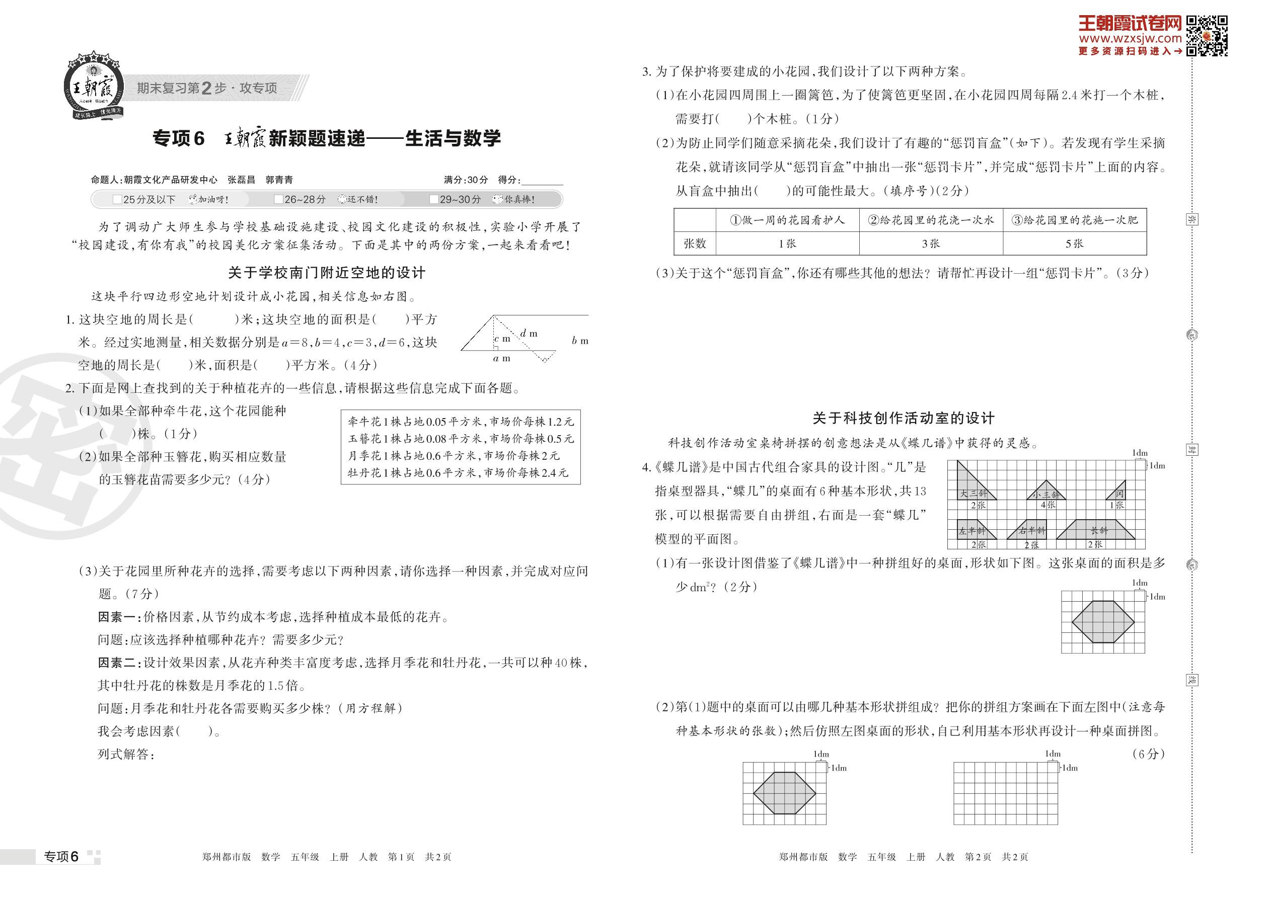王朝霞期末专项卷——王朝霞新颖题速递:生活与数学五年级上册数学(人教版)_R221112142331252【6】