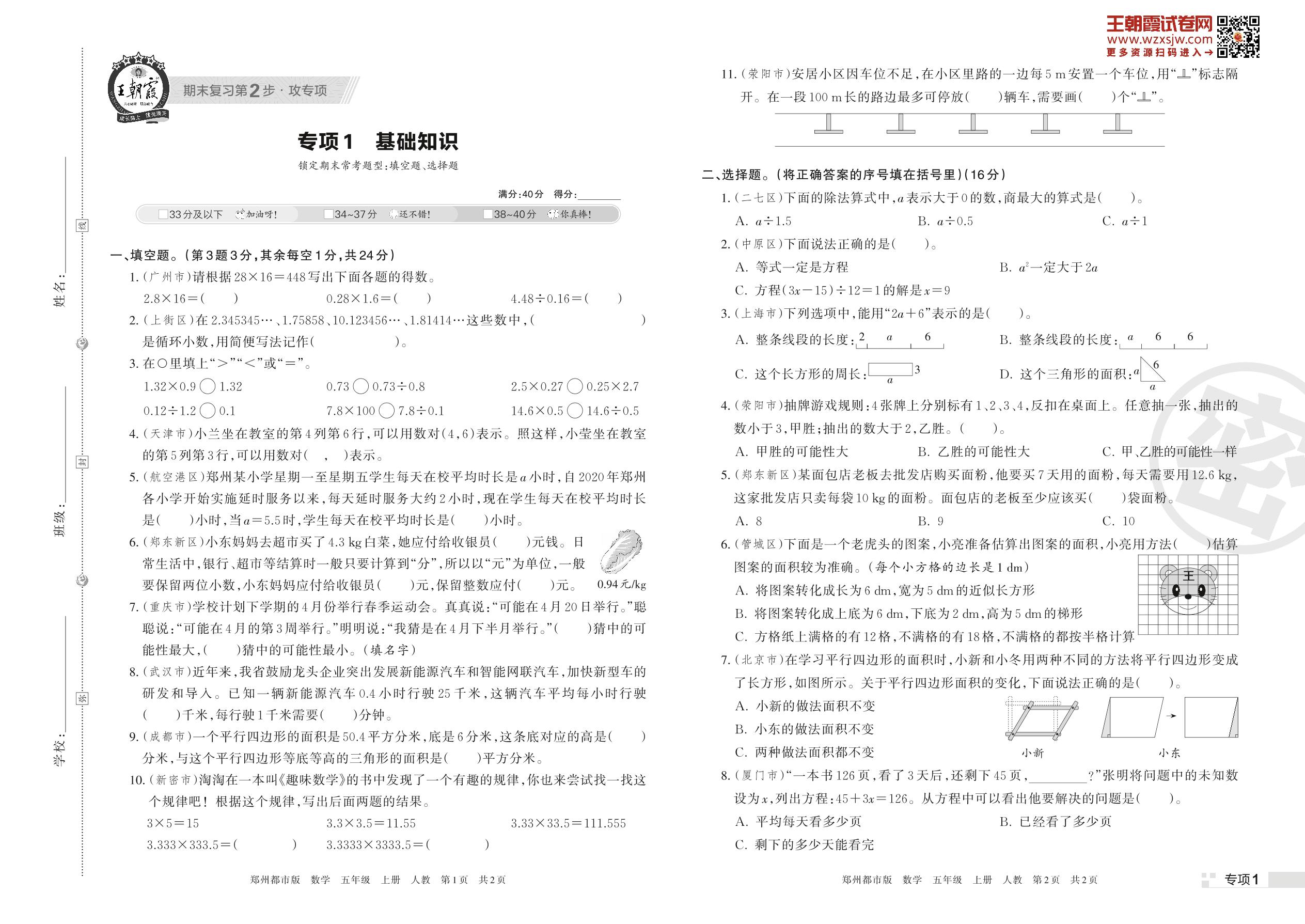 王朝霞期末专项卷——基础知识五年级上册数学(人教版)_R221112142332852【1】