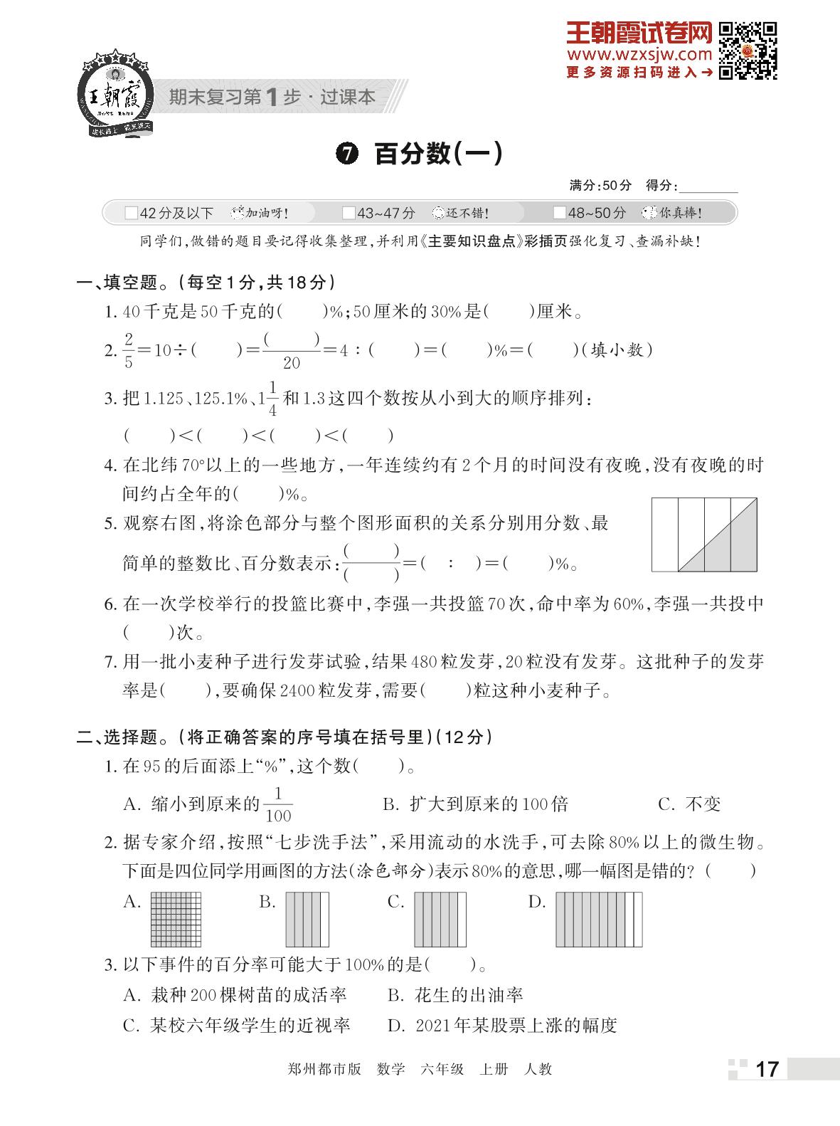王朝霞期末过课本——7 百分数(一)六年级上册数学(人教版)_R221112142949186
