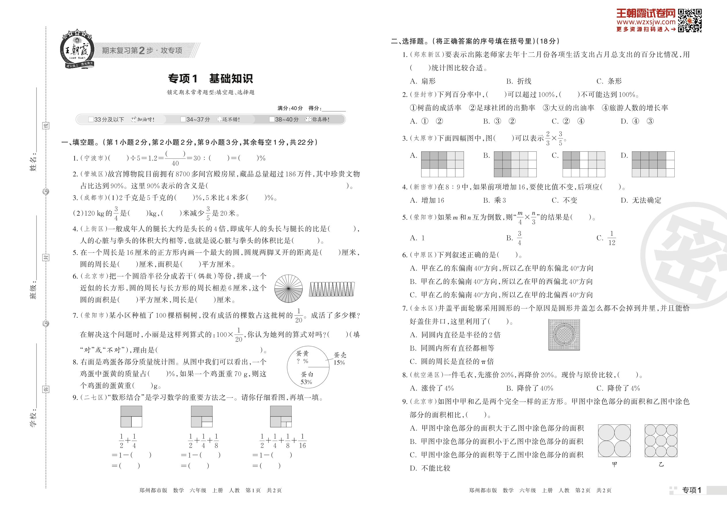 王朝霞期末专项卷——基础知识六年级上册数学(人教版)_R221112142950225【1】