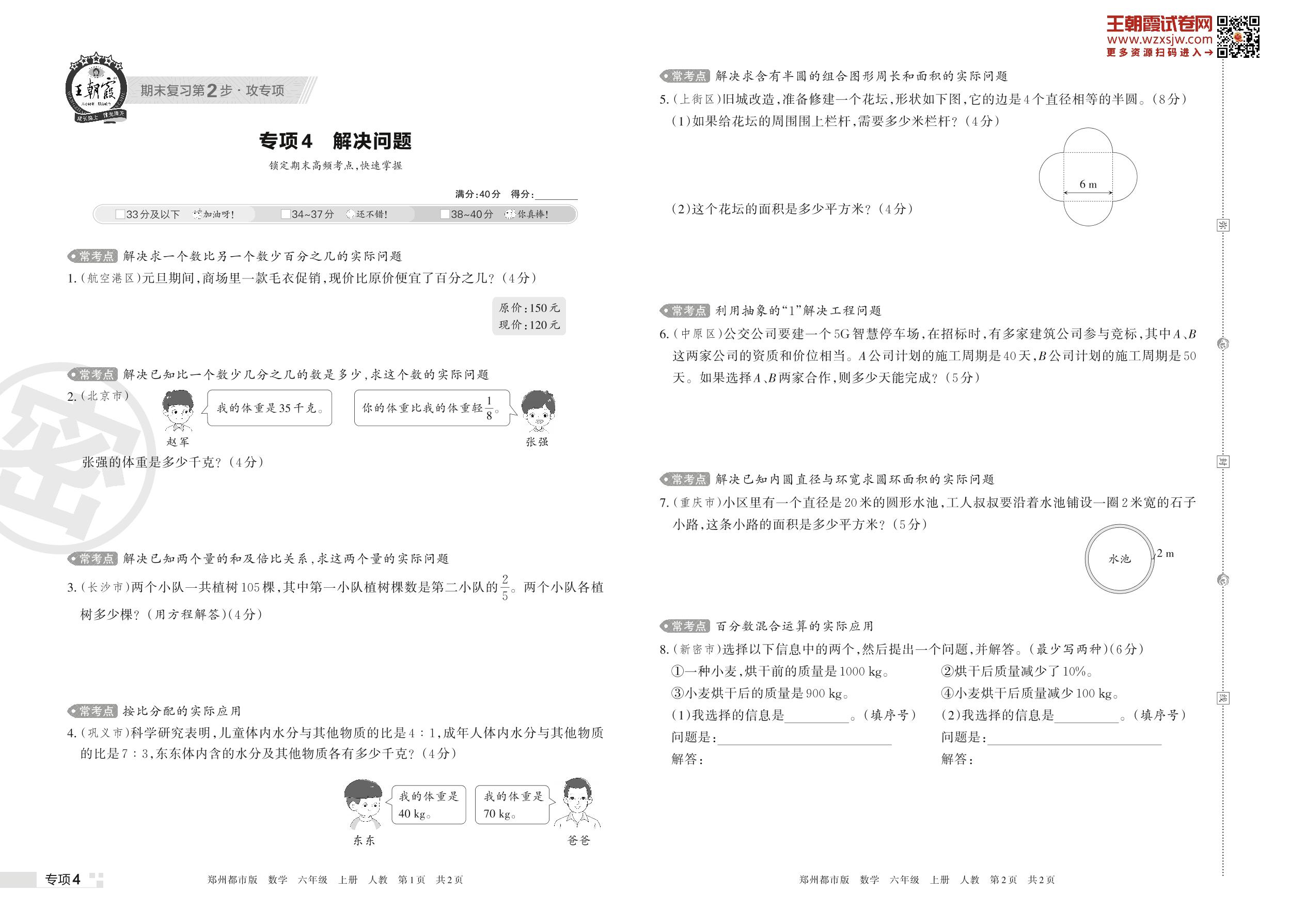 王朝霞期末专项卷——解决问题六年级上册数学(人教版)_R221112142950712【4】