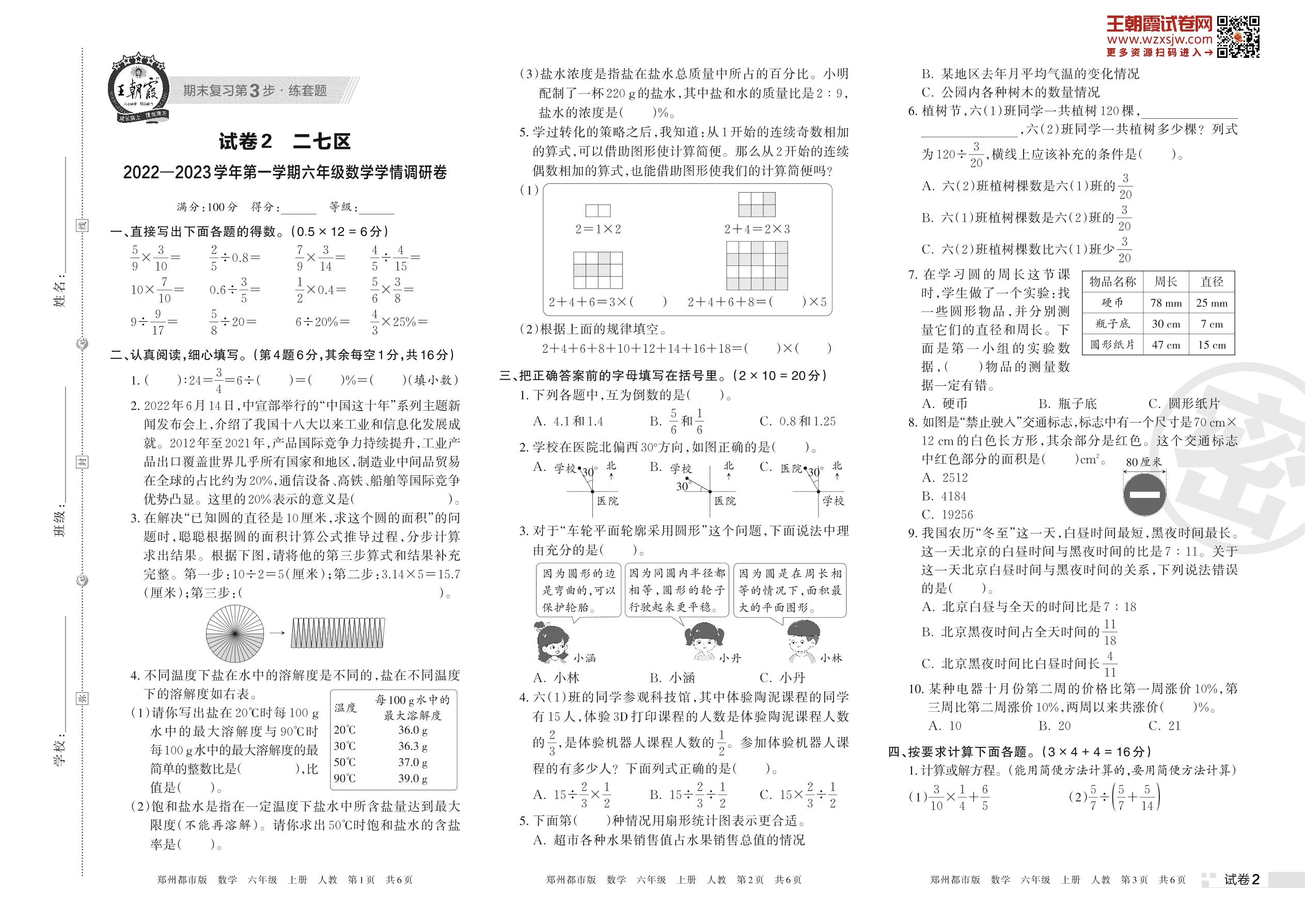 二七区2022—2023学年第一学期六年级数学学情调研卷(人教版)_R221112142950174【2】