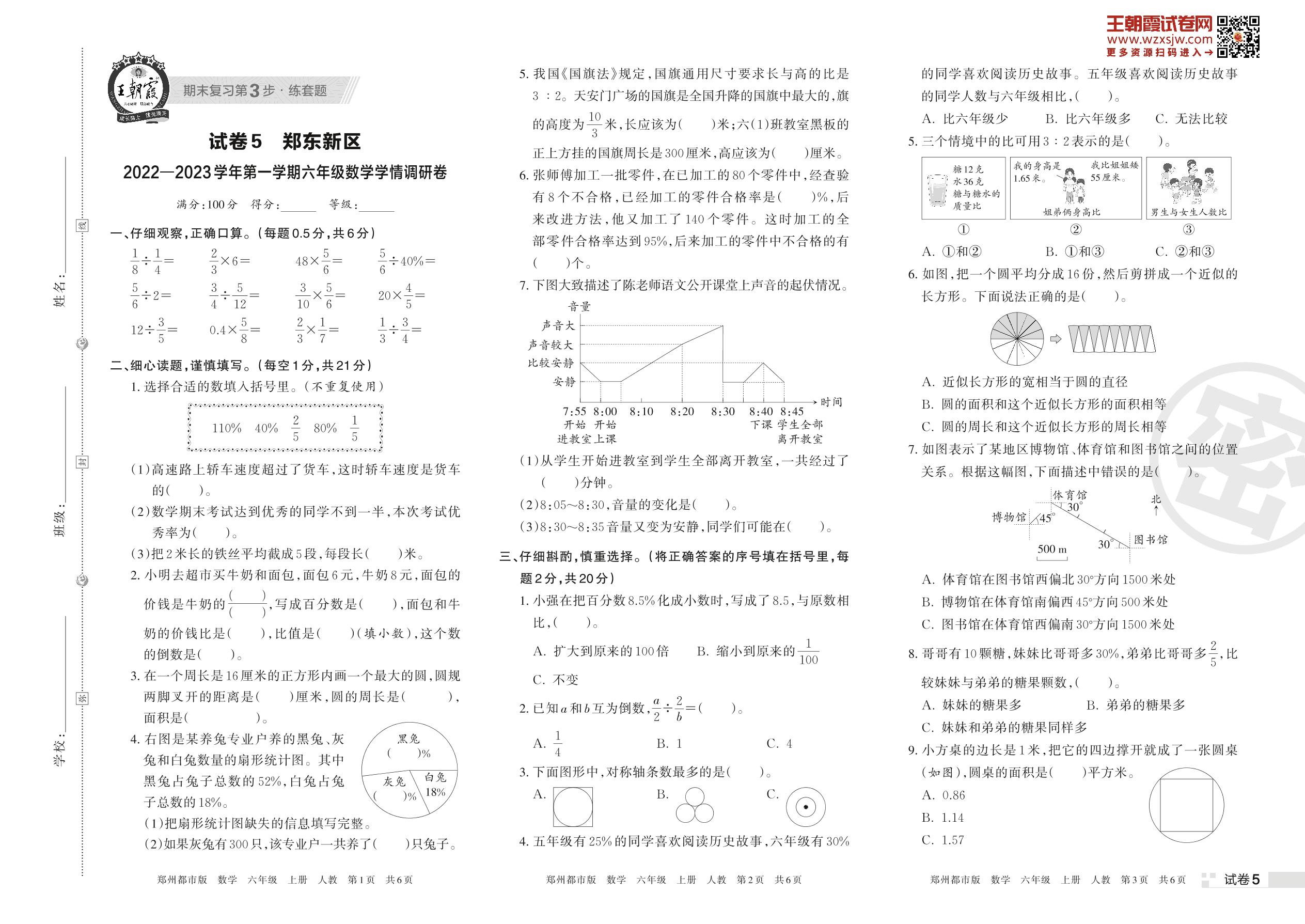 郑东新区2022—2023学年第一学期六年级数学学情调研卷(人教版)_R221112142951483【5】