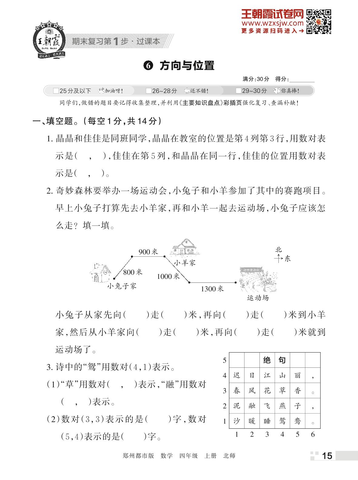 王朝霞期末过课本——6 方向与位置四年级上册数学(北师版)_R221112144740390