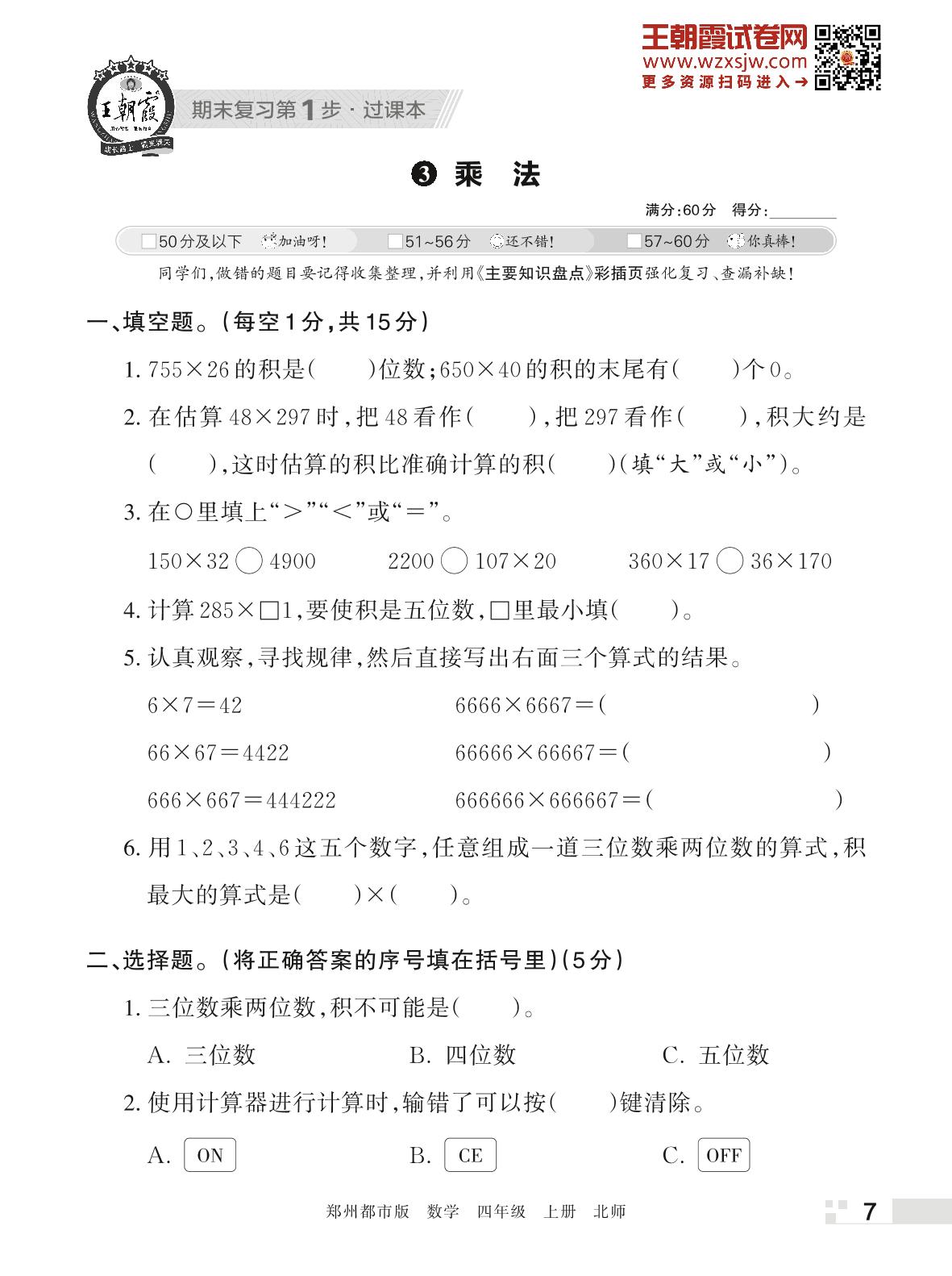 王朝霞期末过课本——3 乘法四年级上册数学(北师版)_R221112144741313