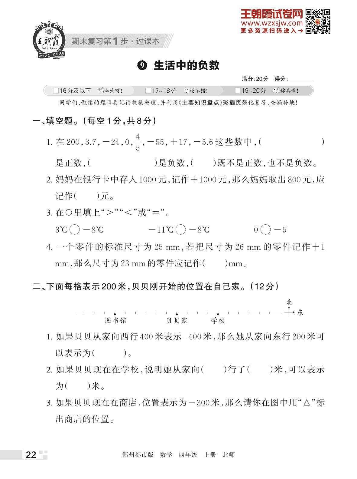 王朝霞期末过课本——9 生活中的负数四年级上册数学(北师版)_R221112144742834