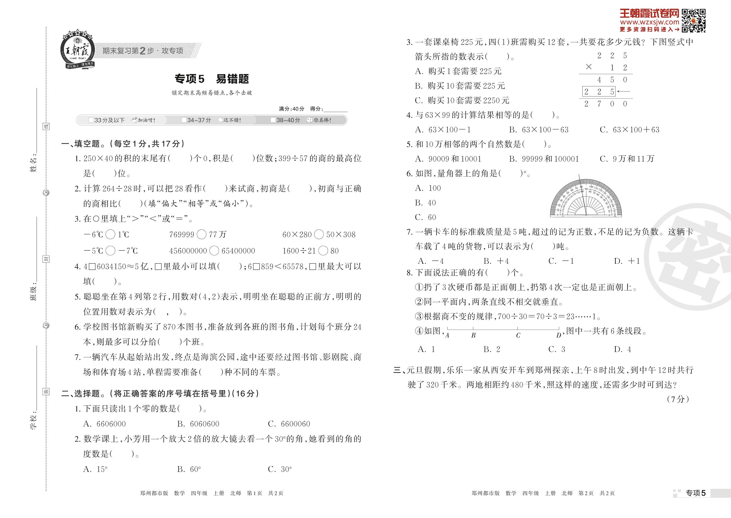 王朝霞期末专项卷——易错题四年级上册数学(北师版)_R221112144742224【5】