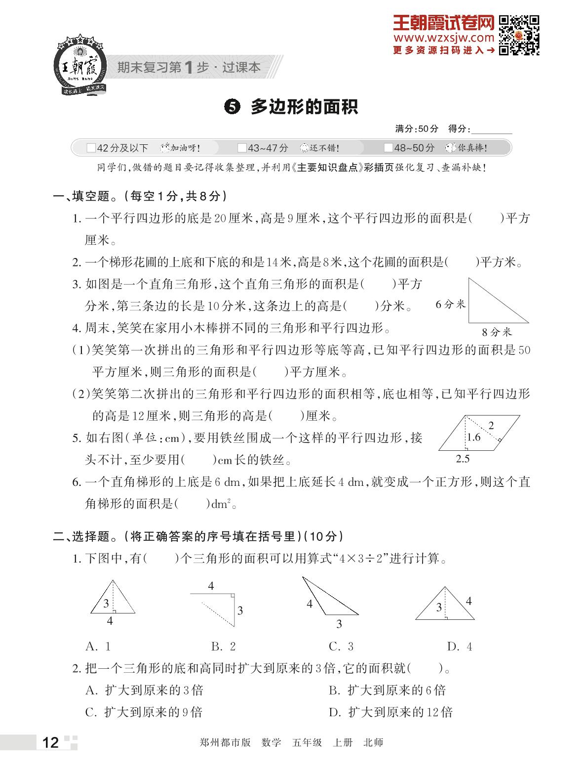 王朝霞期末过课本——5 多边形的面积五年级上册数学(北师版)_R221112150251925