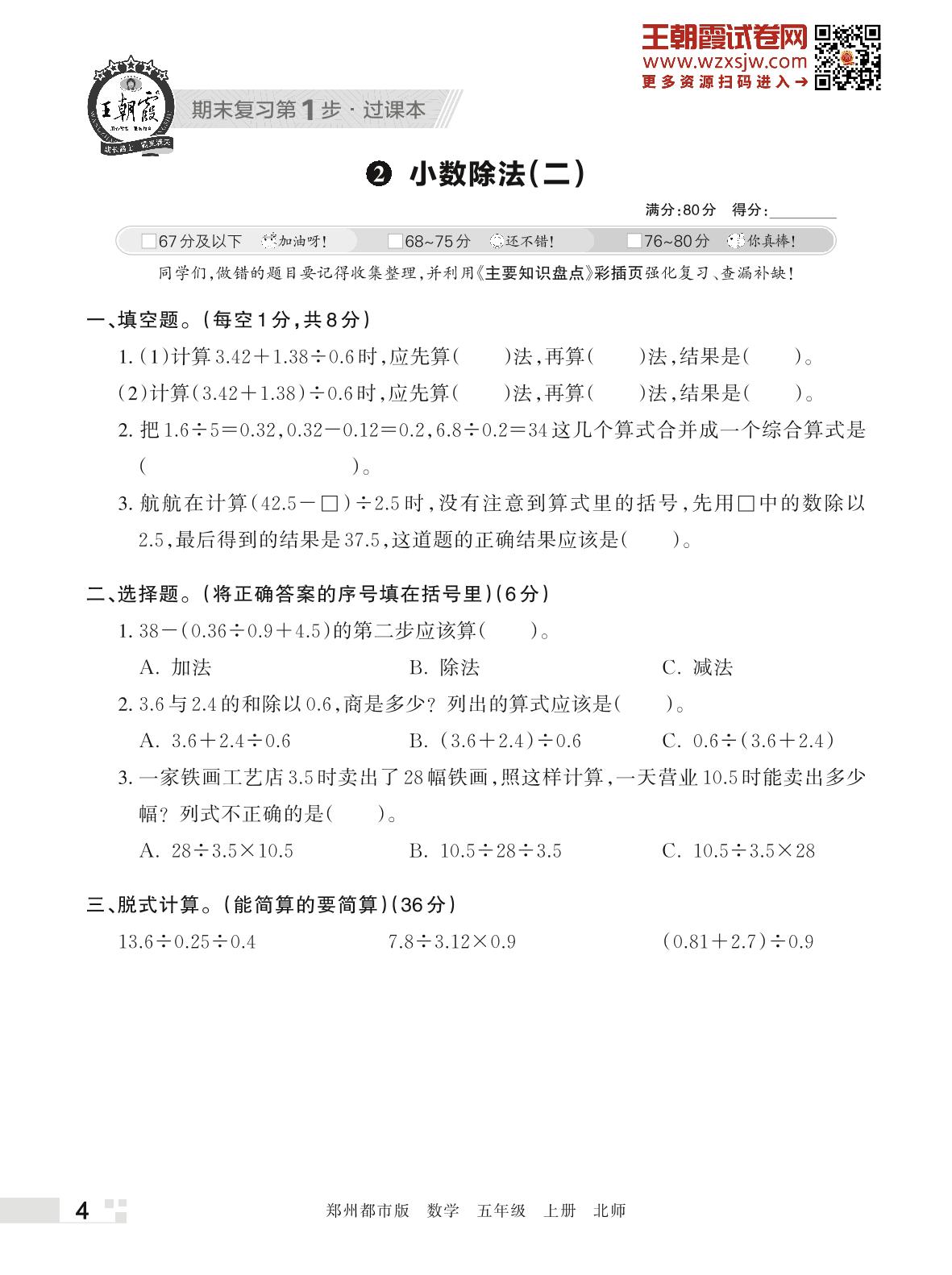王朝霞期末过课本——2 小数除法(二)五年级上册数学(北师版)_R221112150251871