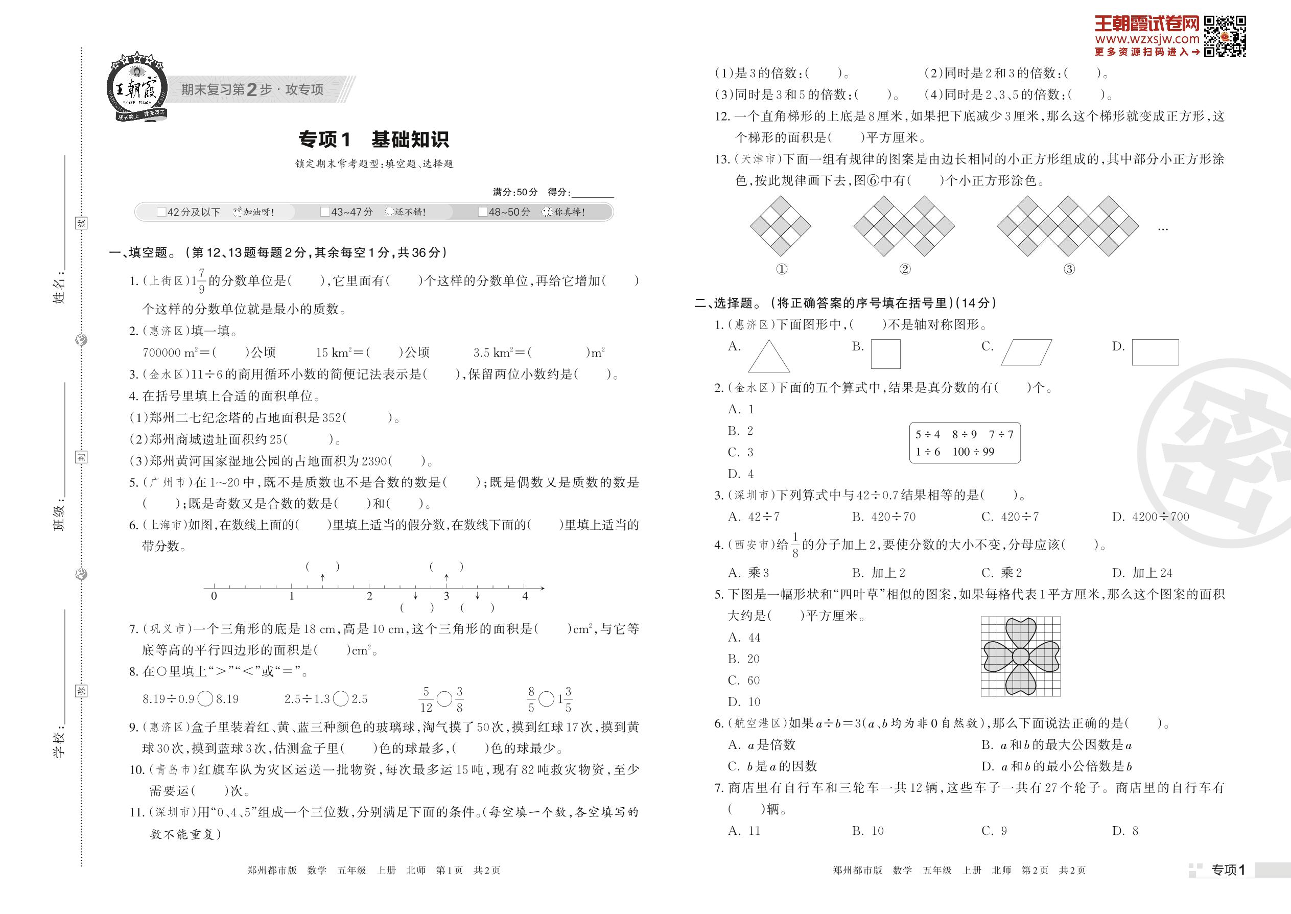 王朝霞期末专项卷——基础知识五年级上册数学(北师版)_R221112150252826【1】