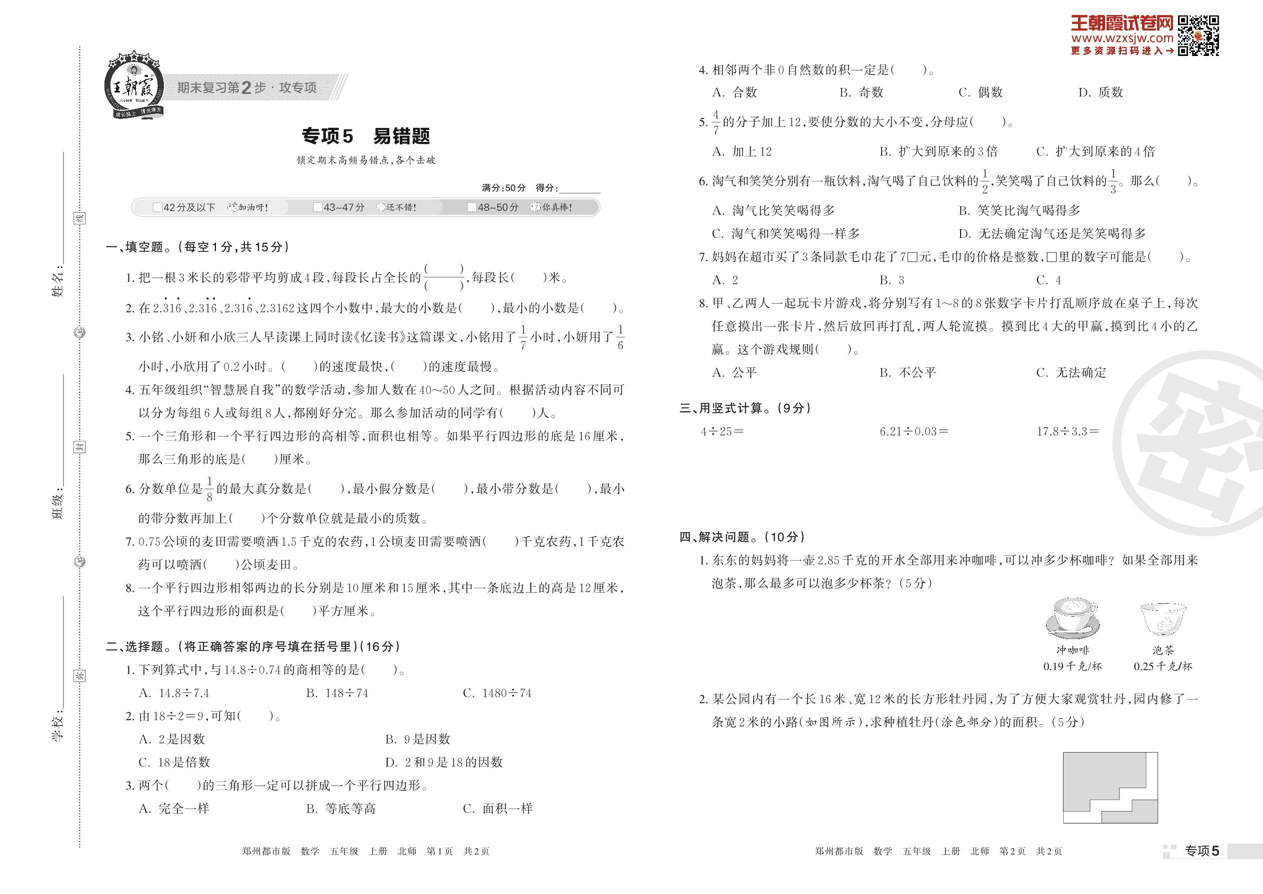 王朝霞期末专项卷——易错题五年级上册数学(北师版)_R221112150253233【5】