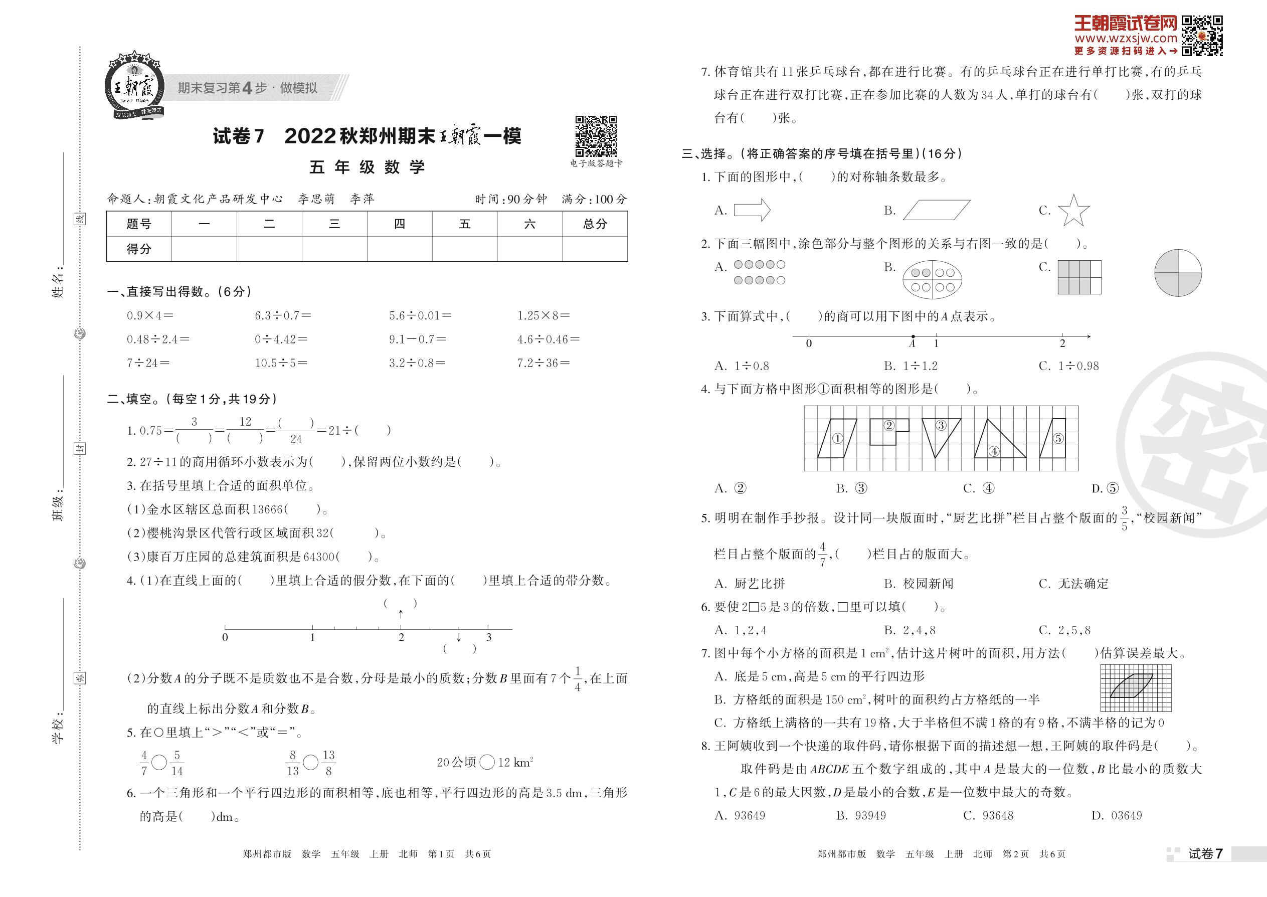 王朝霞期末模拟卷五年级上册数学(北师版)_R221112150254850【7】