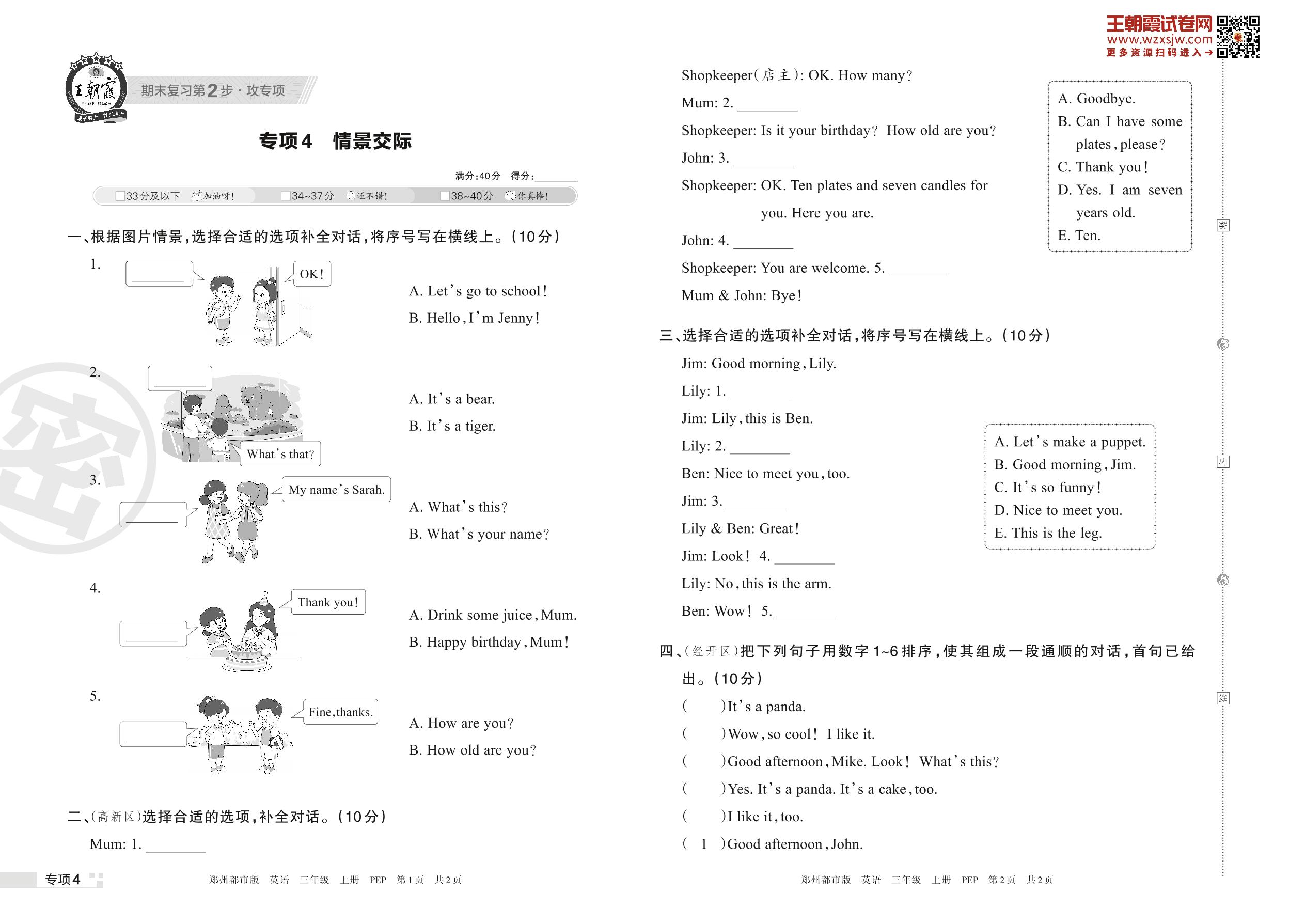 王朝霞期末专项卷——情景交际三年级上册英语(PEP版)_R221112151358827【4】