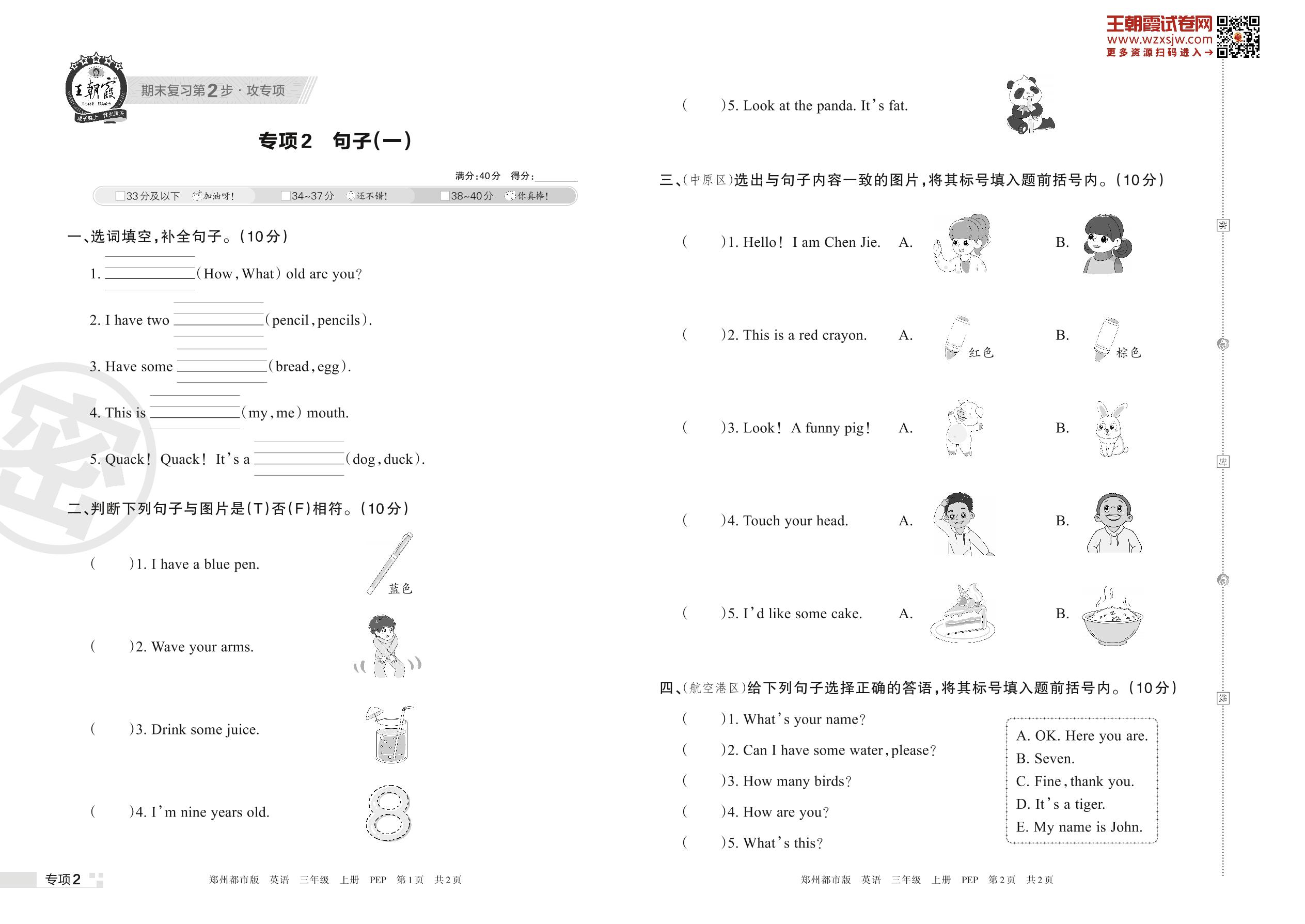 王朝霞期末专项卷——句子(一)三年级上册英语(PEP版)_R221112151358248【2】