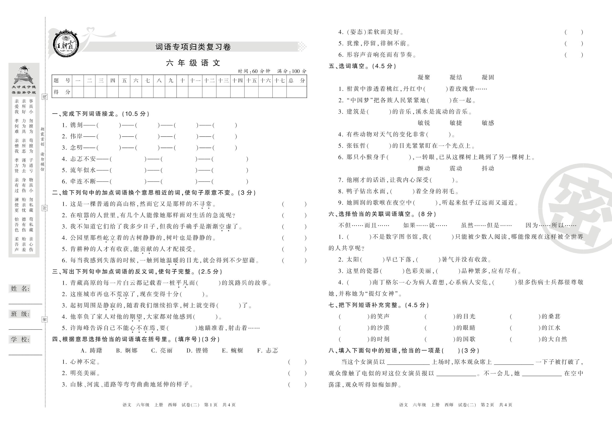 王朝霞期末专项卷六年级上册语文(西师版)_R210802113610【2】