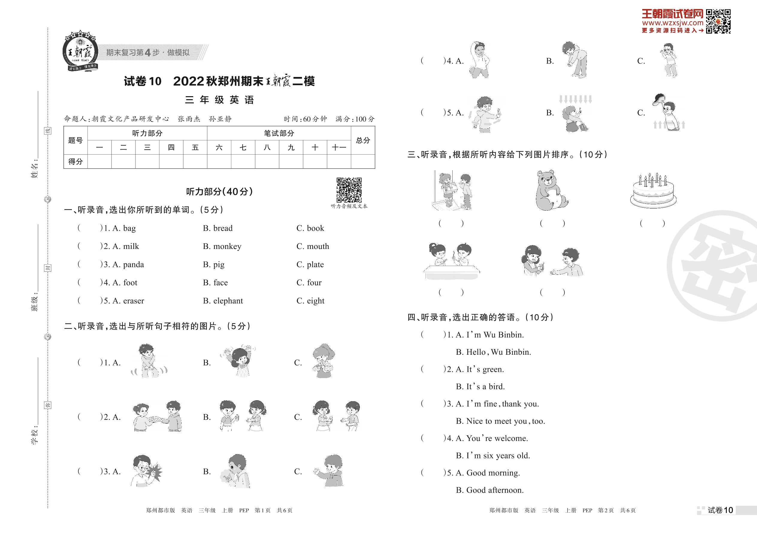 王朝霞期末模拟卷三年级上册英语(PEP版)_R221112151400607【10】