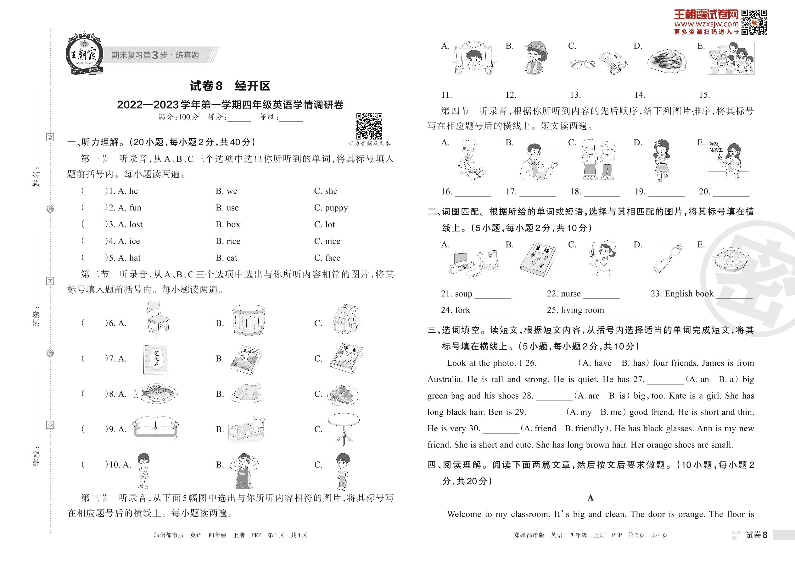 经开区2022—2023学年第一学期四年级英语学情调研卷(PEP版)【8】