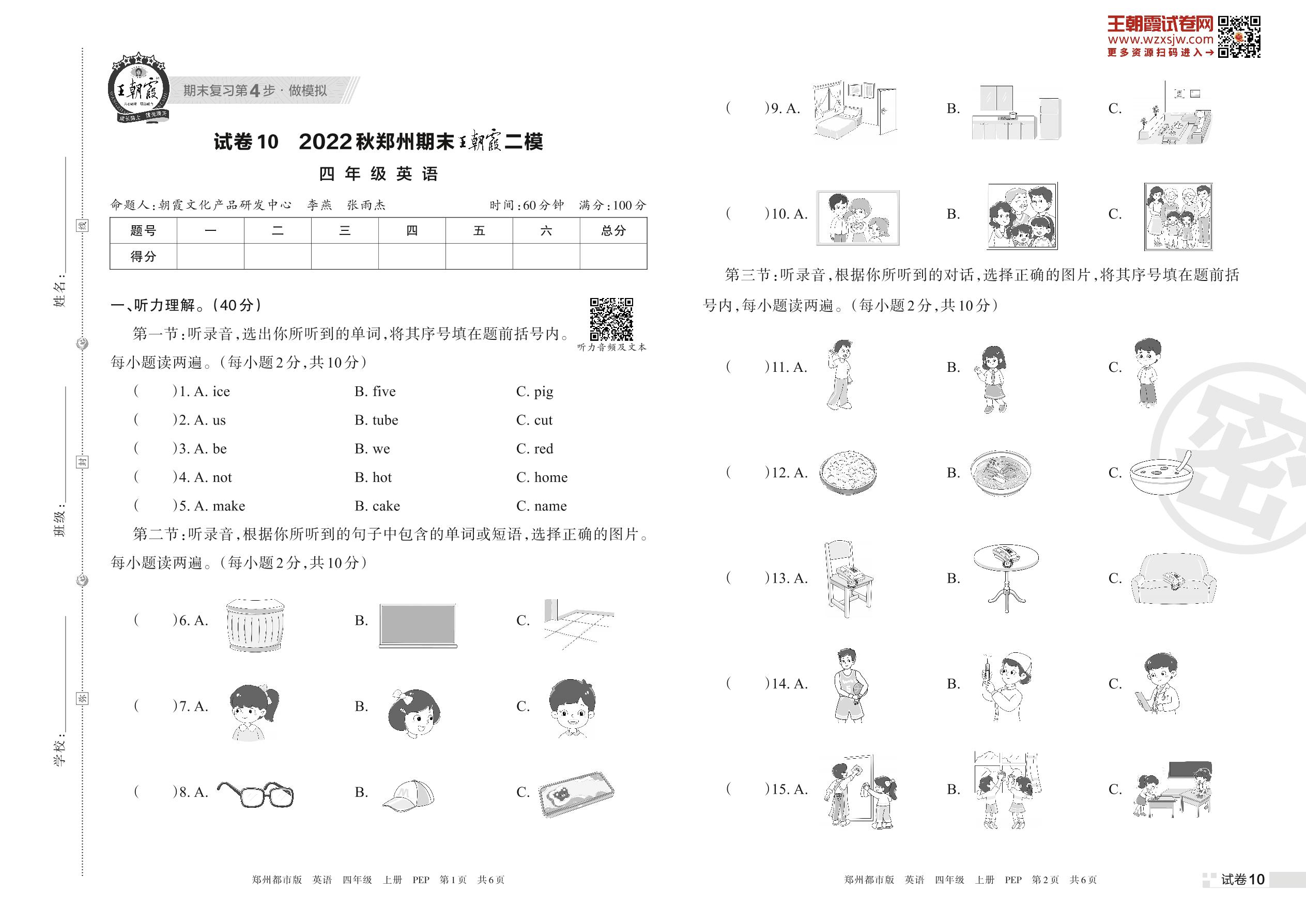 王朝霞期末模拟卷四年级上册英语(PEP版)_R221112152143623【10】