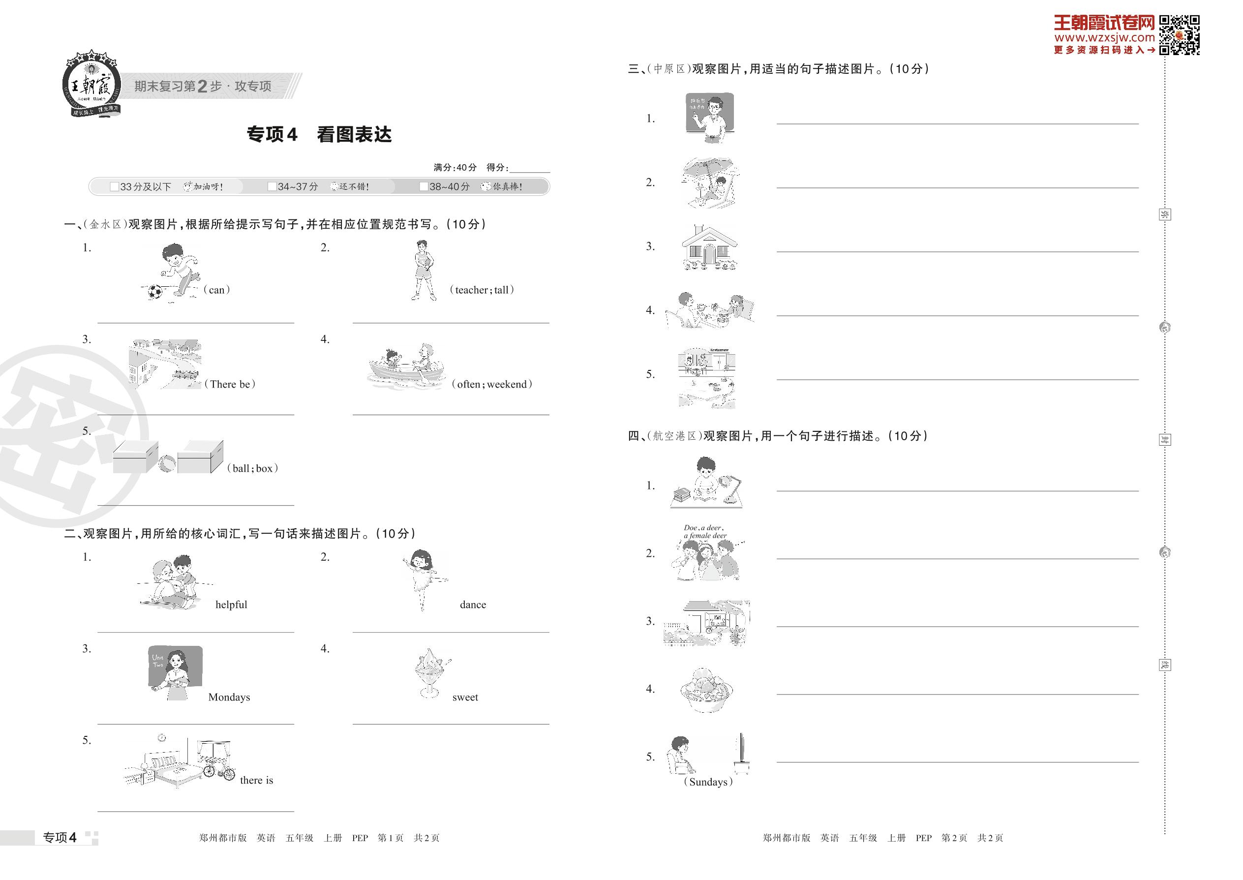 王朝霞期末专项卷——看图表达五年级上册英语(PEP版)【4】