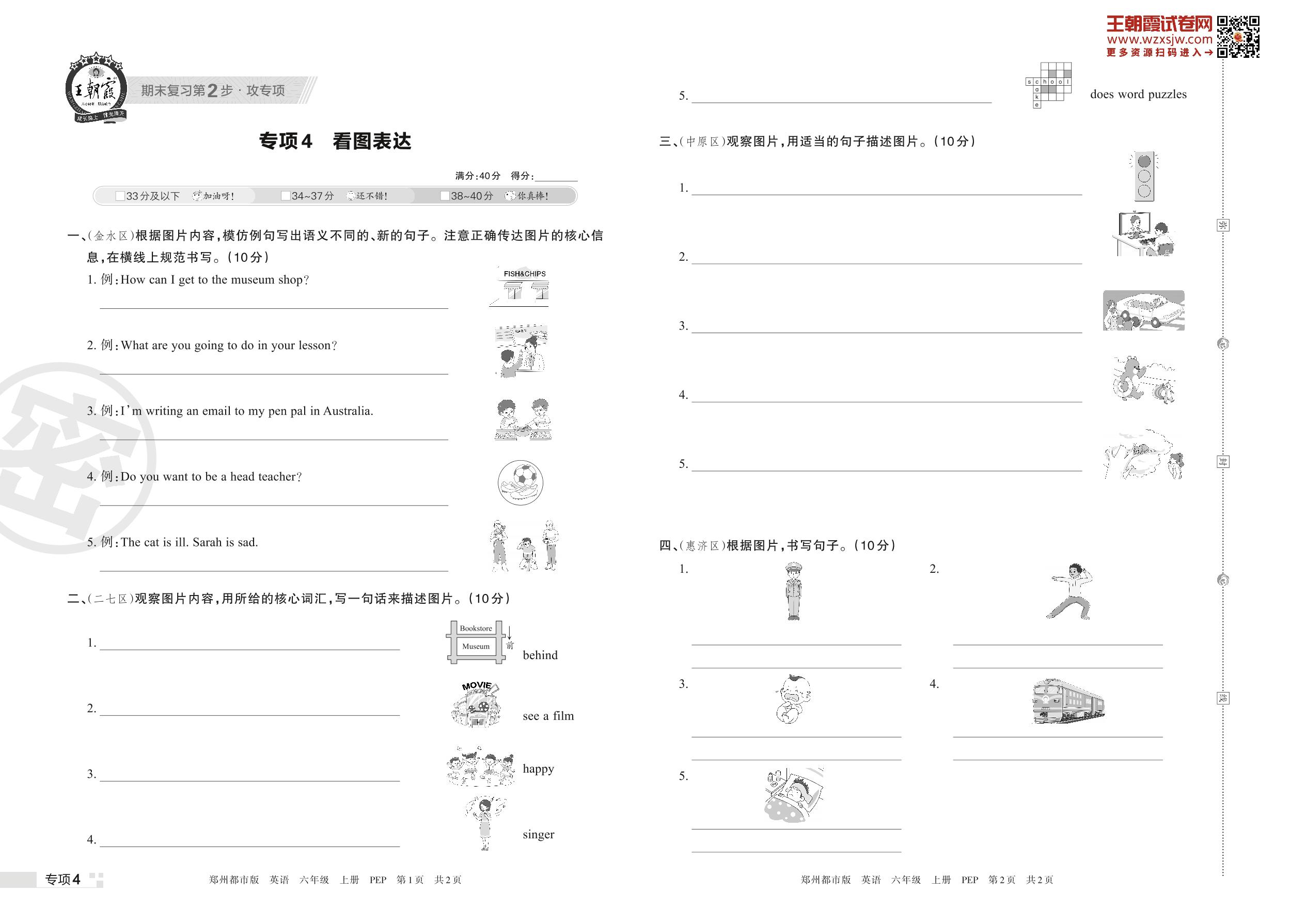 王朝霞期末专项卷——看图表达六年级上册英语(PEP版)【4】