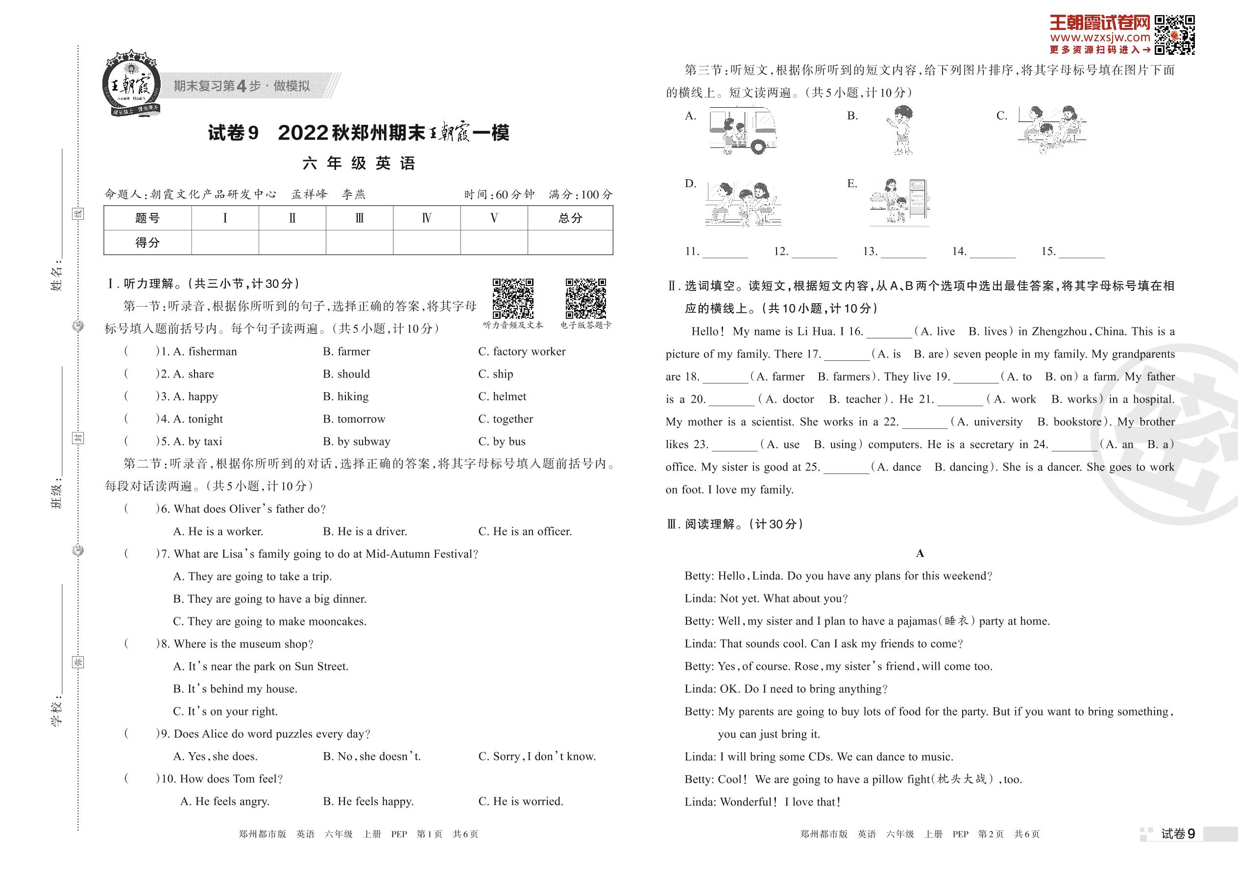 王朝霞期末模拟卷六年级上册英语(PEP版)_R221112153836858【9】