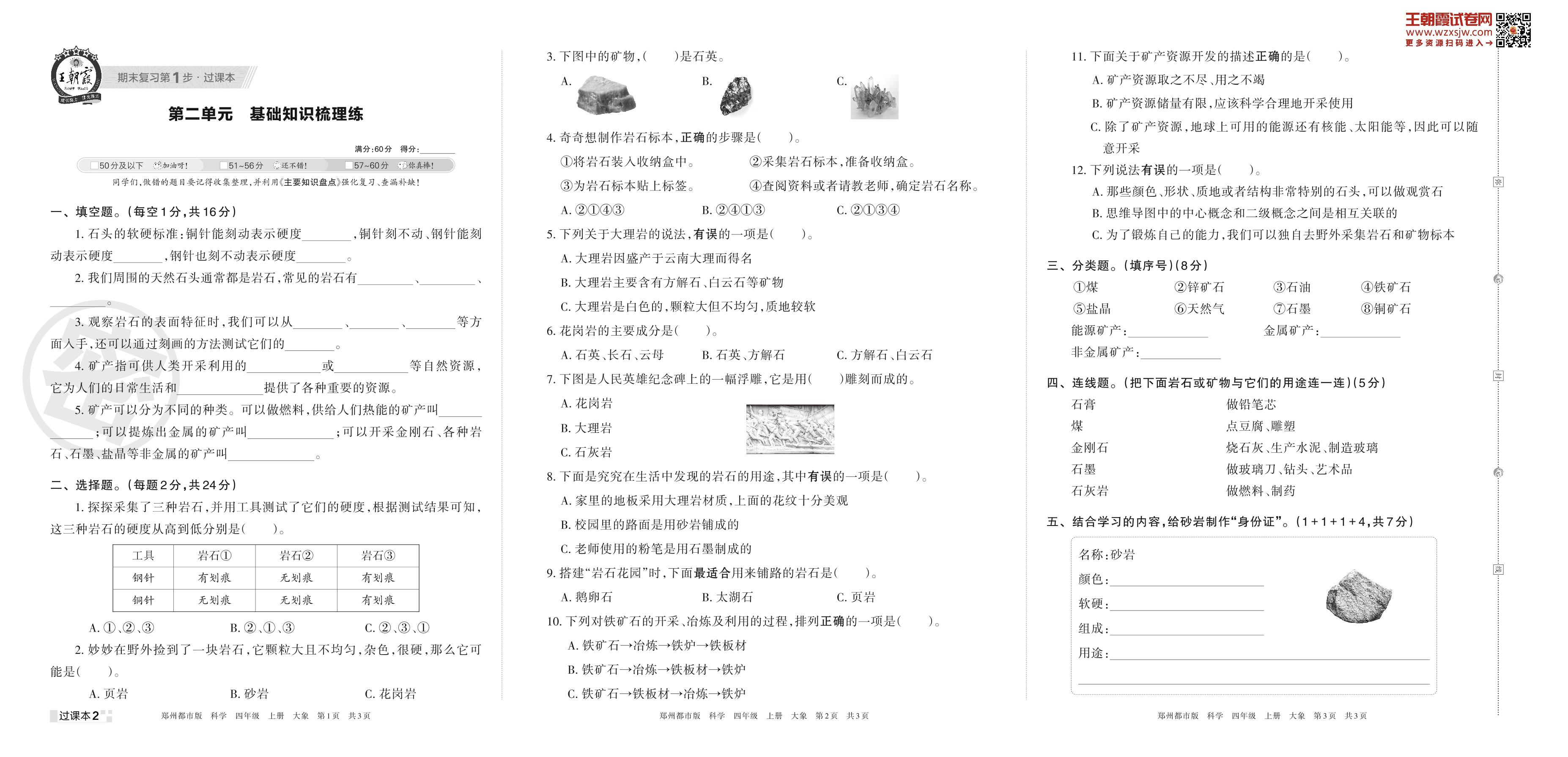 王朝霞期末过课本——第二单元 基础知识梳理练四年级上册科学(大象版)