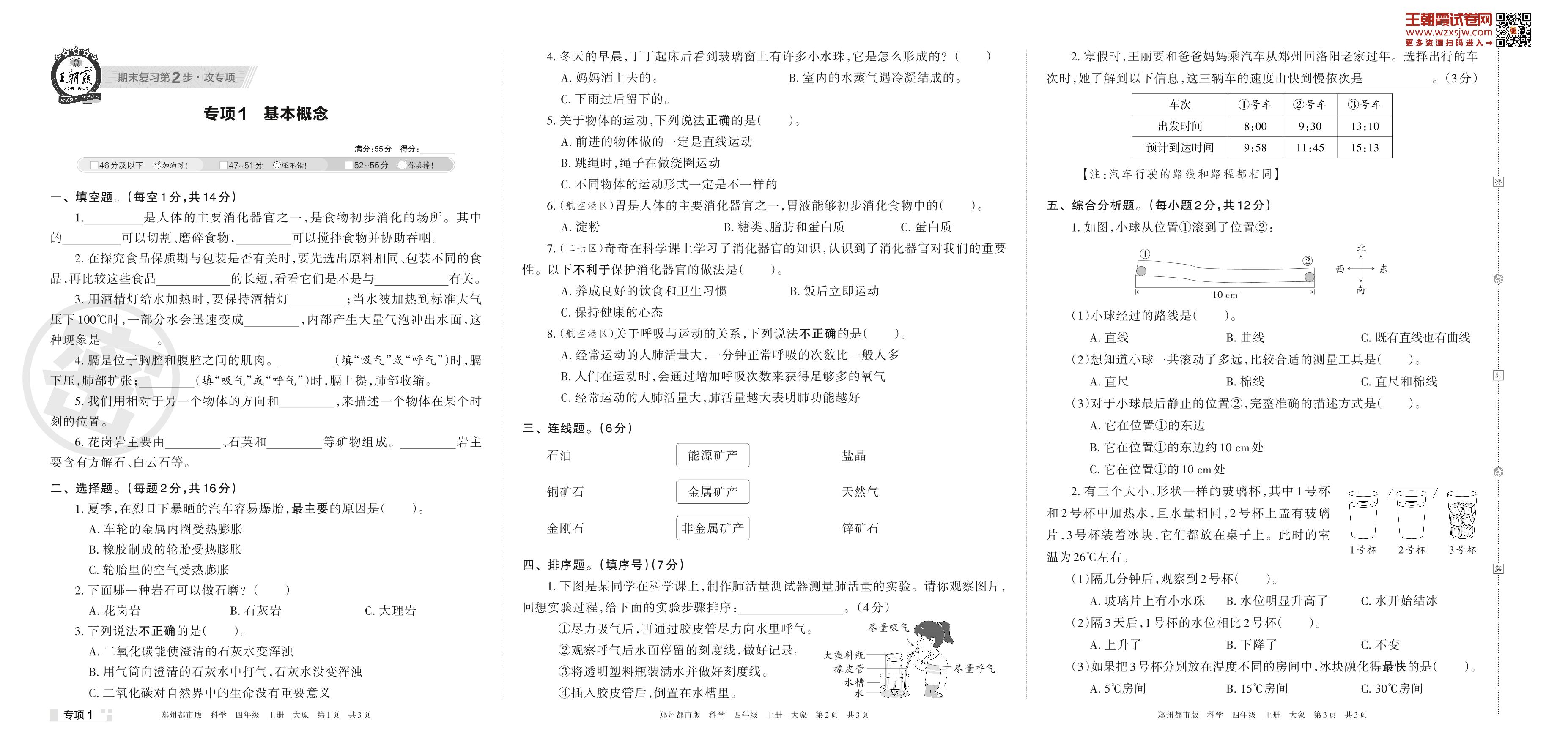 王朝霞期末专项卷——基本概念四年级上册科学(大象版)【1】