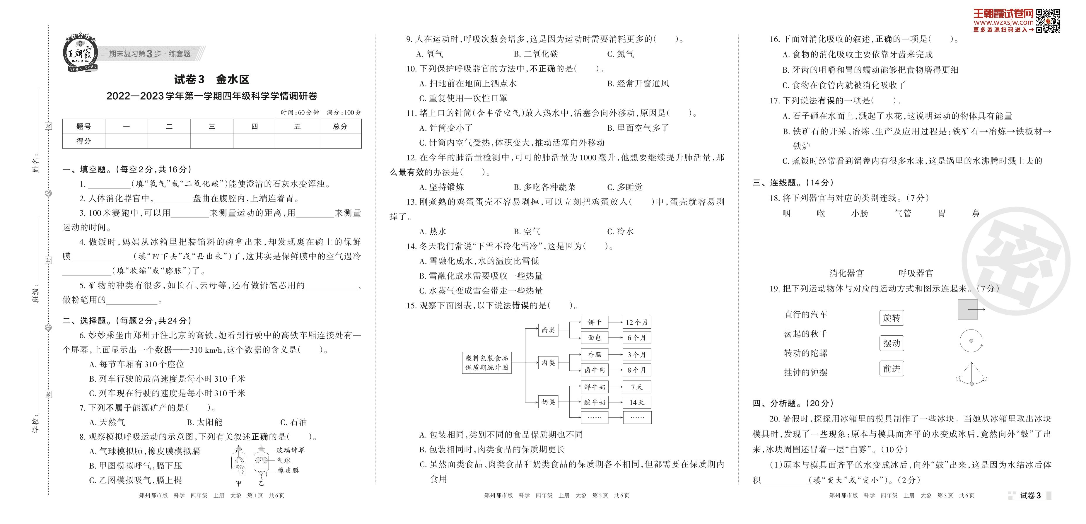 金水区2022—2023学年第一学期四年级科学学情调研卷(大象版)【3】