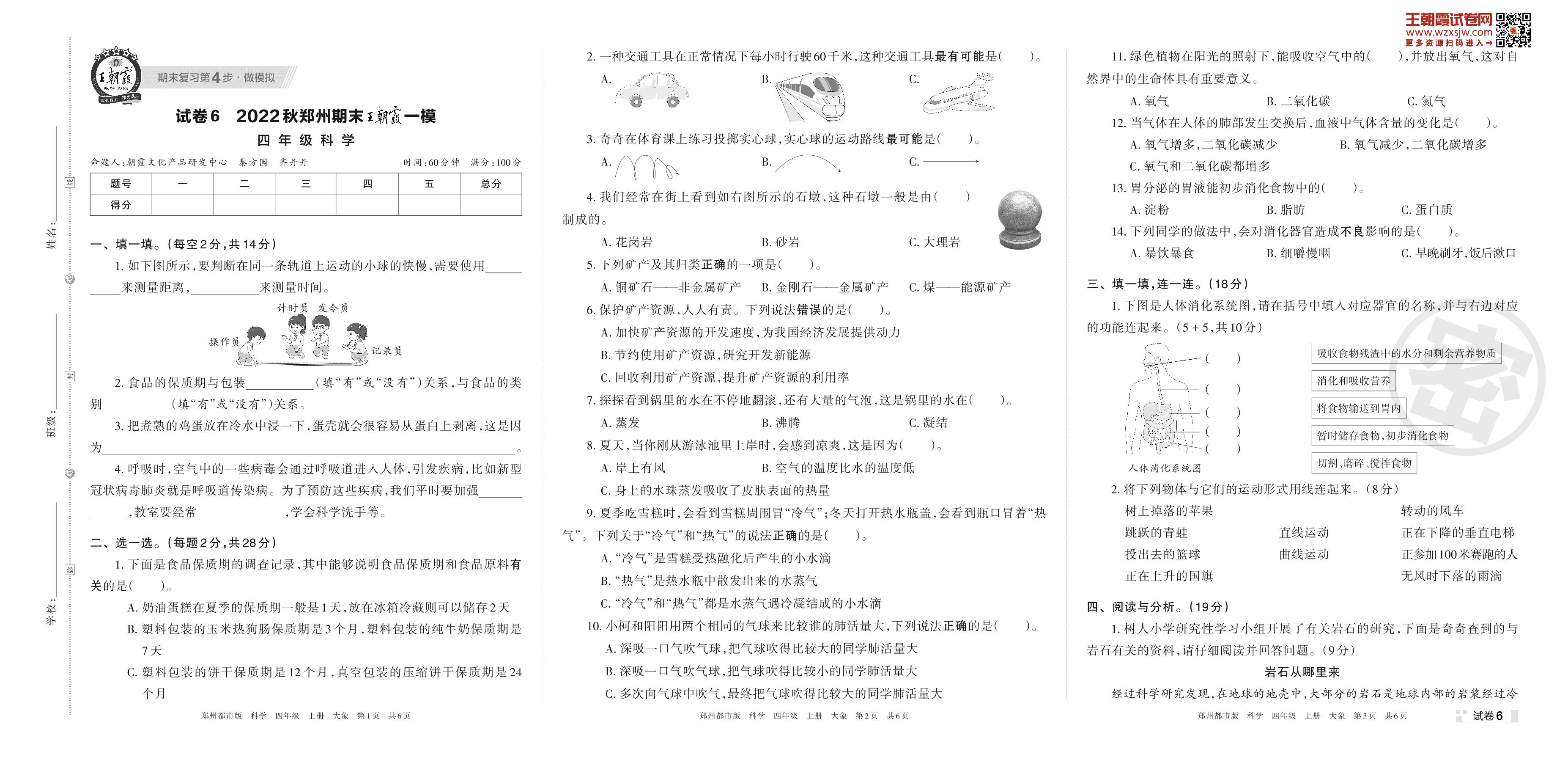 王朝霞期末模拟卷四年级上册科学(大象版)【6】