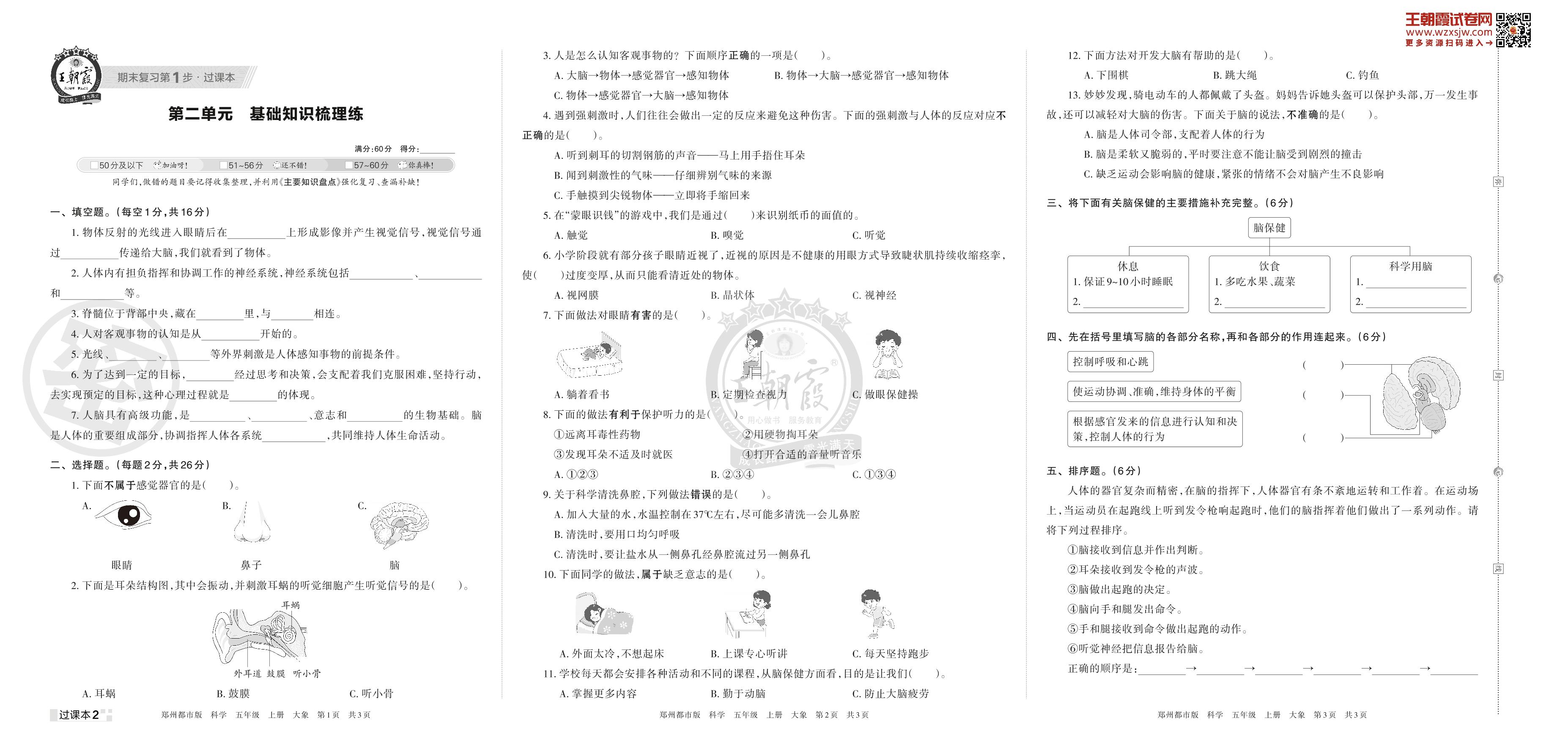 王朝霞期末过课本——第二单元 基础知识梳理练五年级上册科学(大象版)