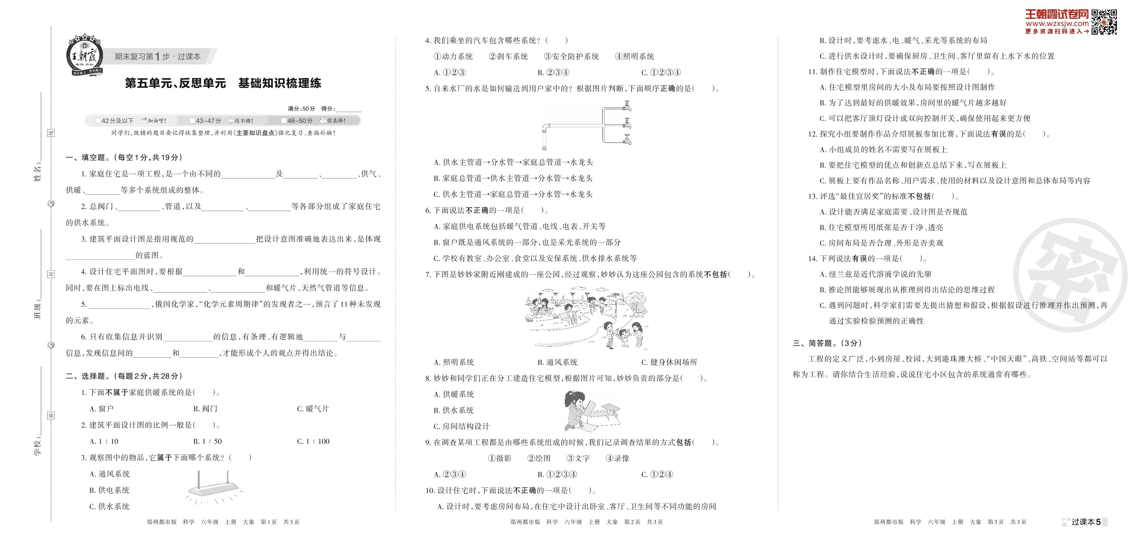 王朝霞期末过课本——第五单元、反思单元 基础知识梳理练六年级上册科学(大象版)