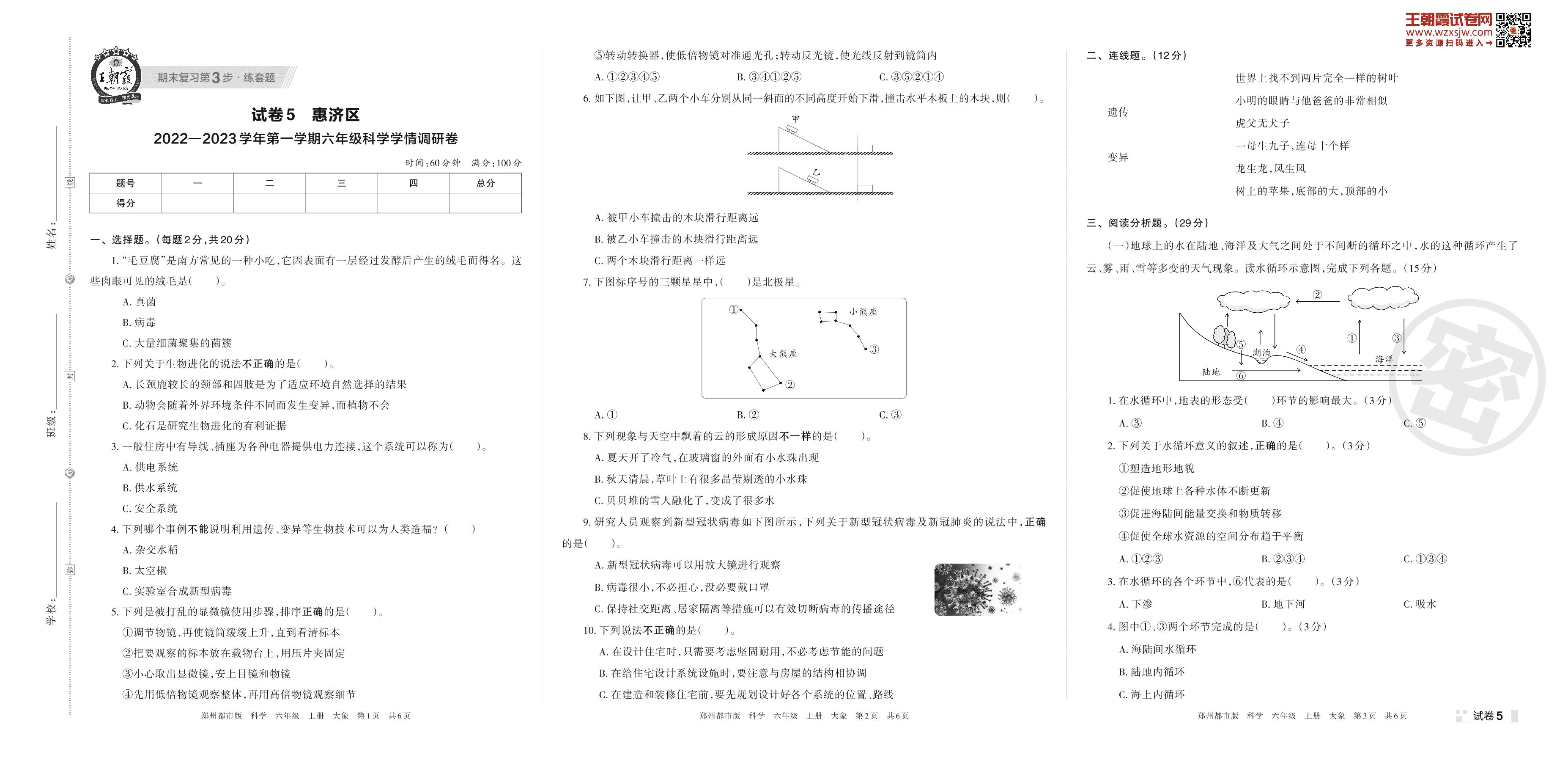 惠济区2022—2023学年第一学期六年级科学学情调研卷(大象版)【5】