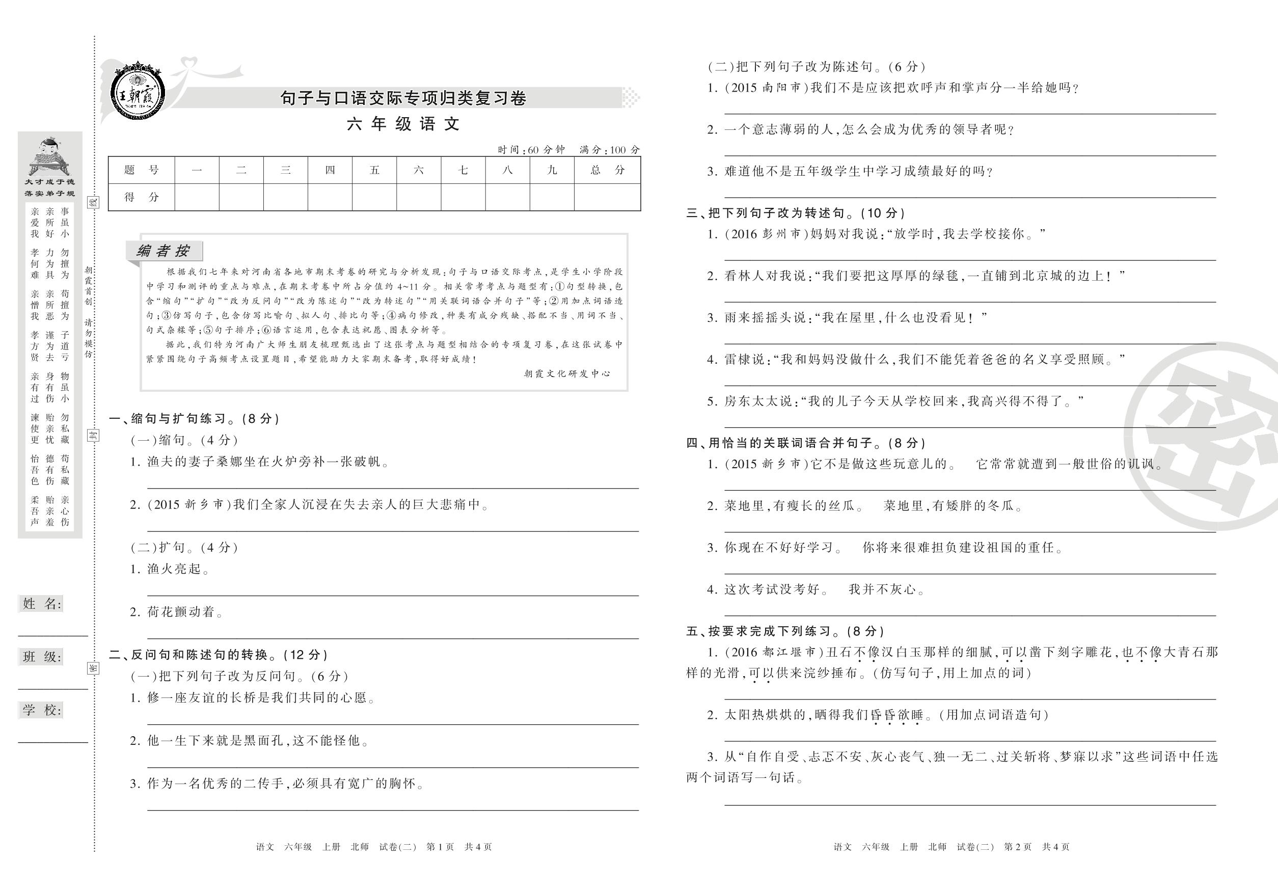 王朝霞期末专项卷六年级上册语文(北师版)_R210802113703【2】