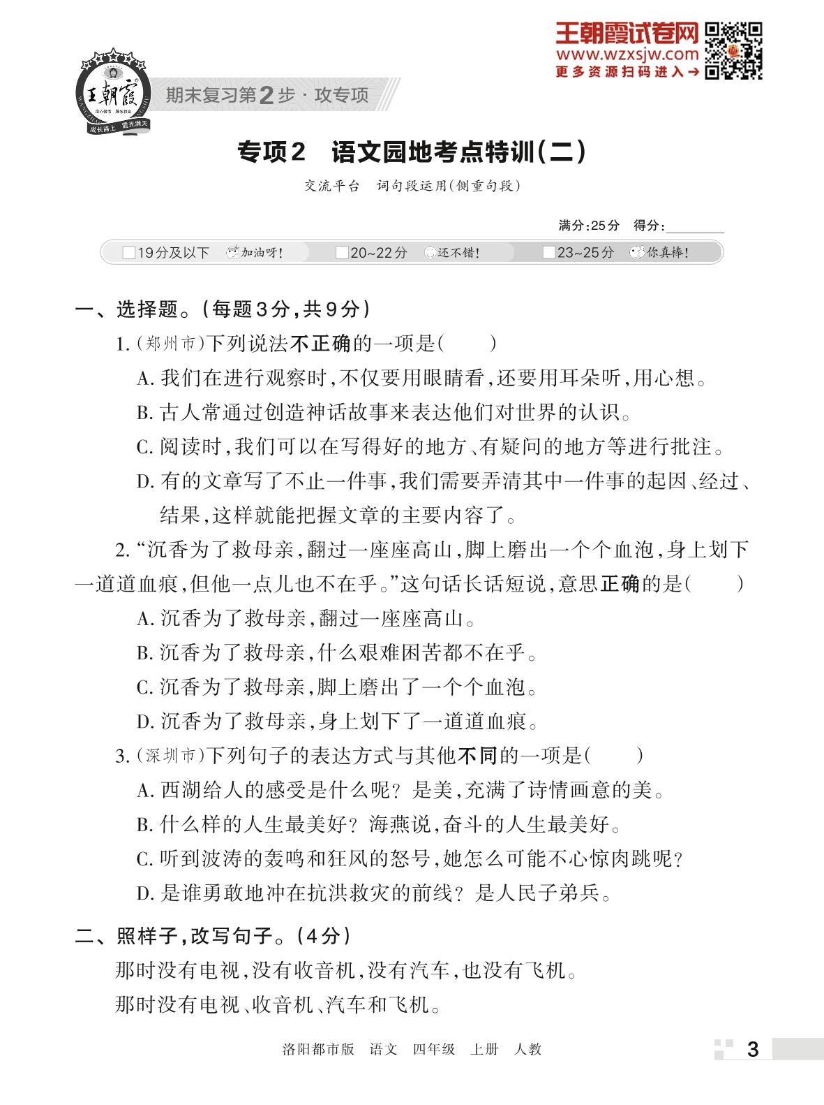 王朝霞期末专项卷——语文园地考点特选(二)四年级上册语文(人教版)【2】