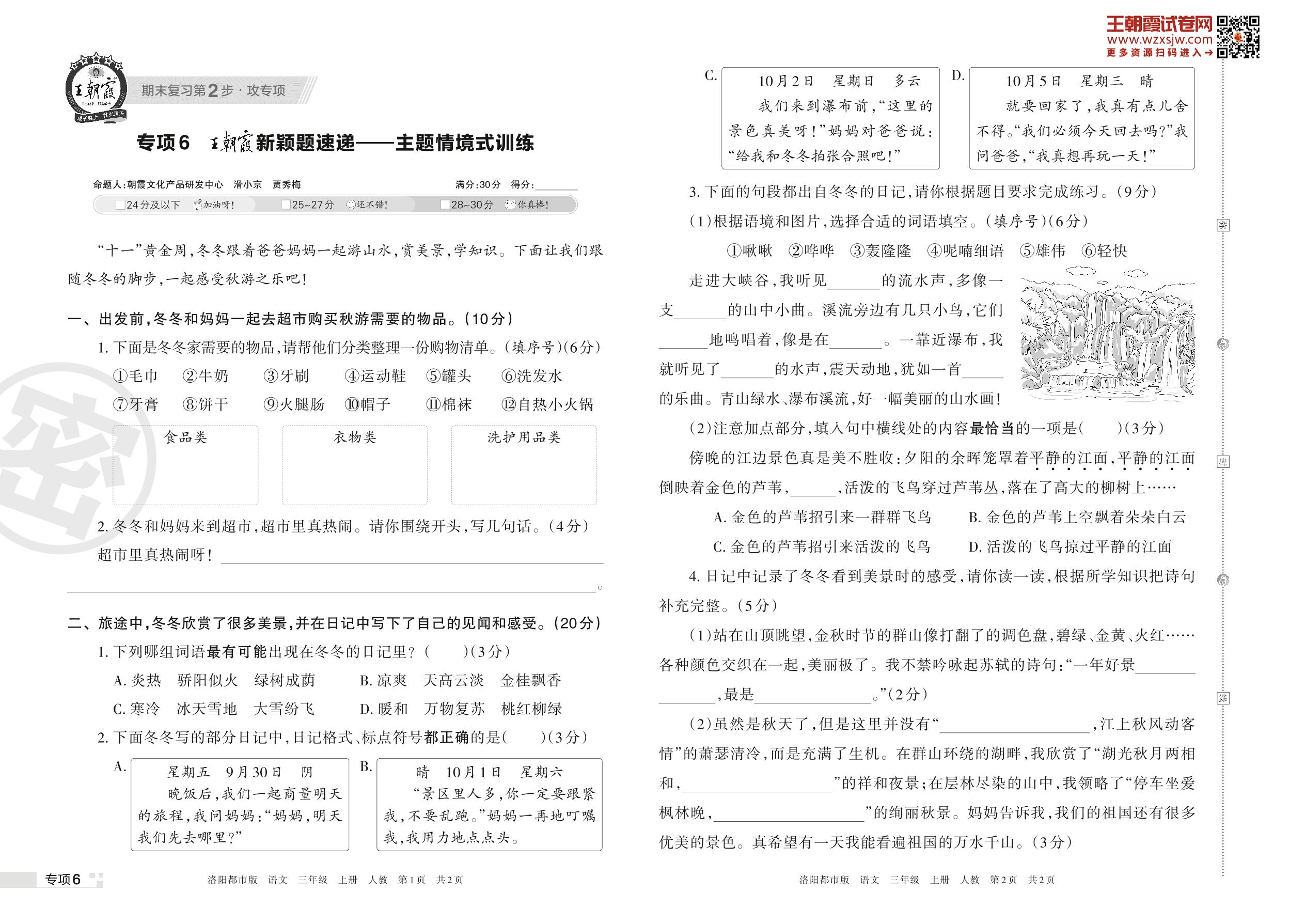 王朝霞期末专项卷——王朝霞新颖题速递:主题情境式训练三年级上册语文(人教版)_R221112163419482【6】