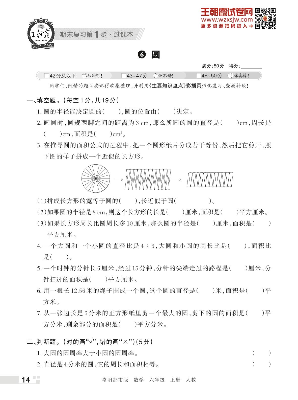 王朝霞期末过课本——6 圆六年级上册数学(人教版)_R221112165334722