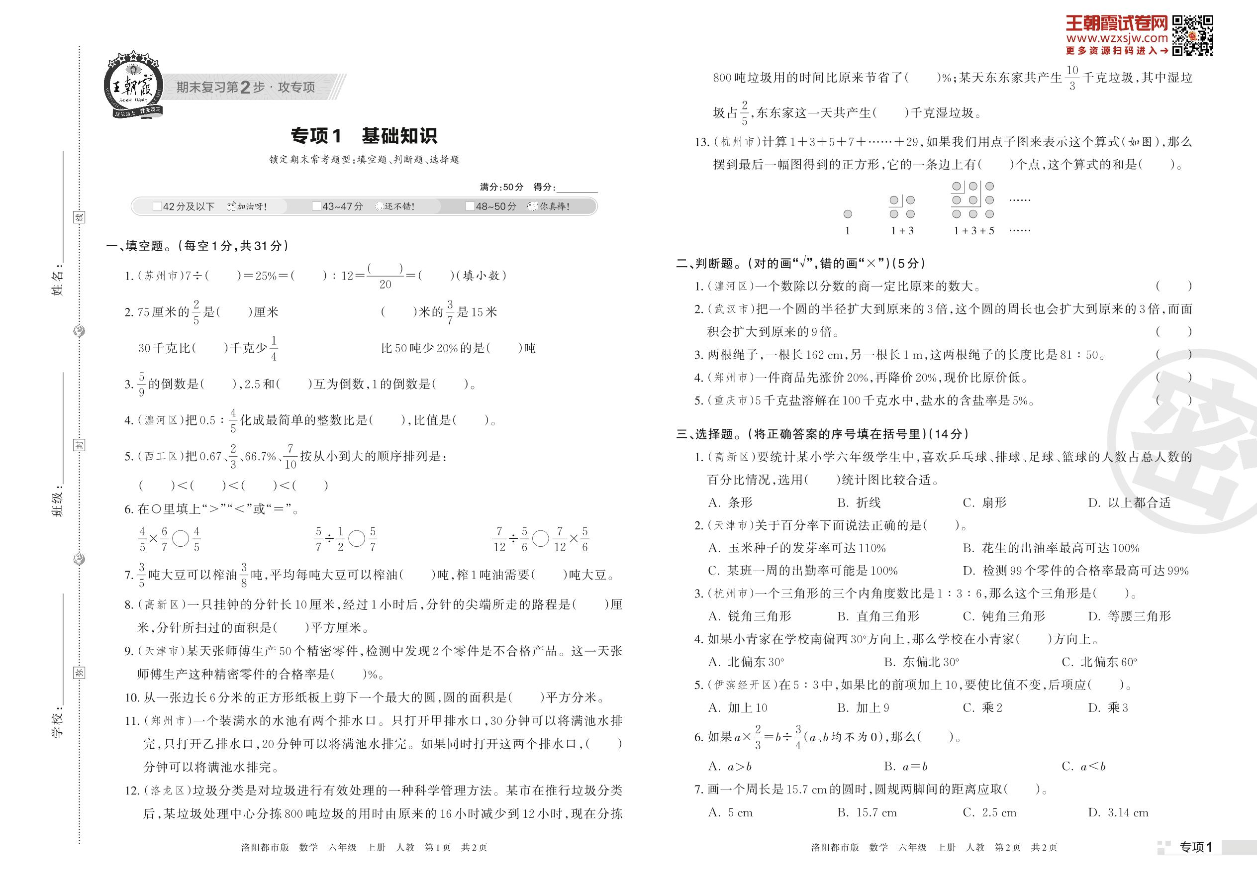 王朝霞期末专项卷——基础知识六年级上册数学(人教版)_R221112165335027【1】