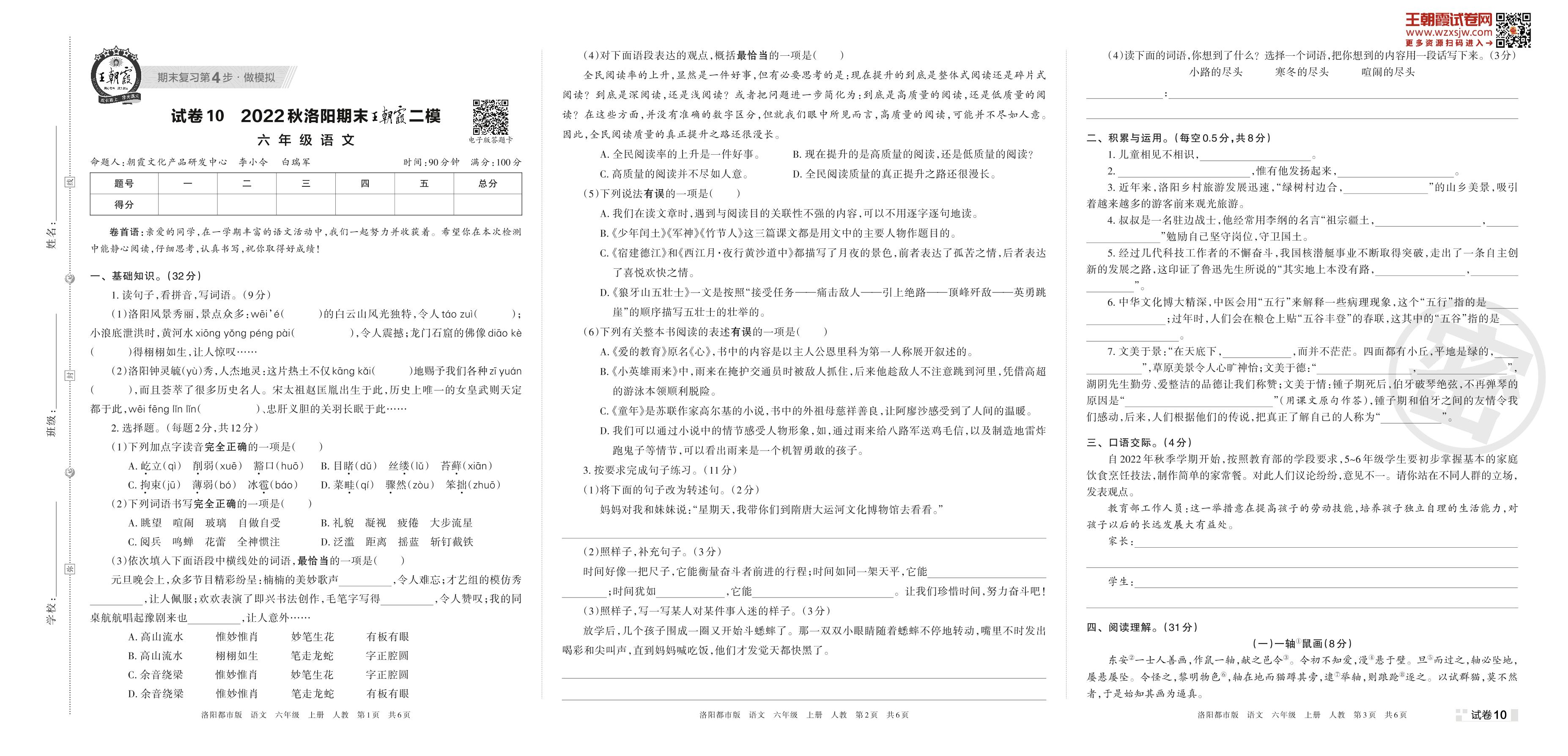 王朝霞期末模拟卷六年级上册语文(人教版)_R221112170037875【10】