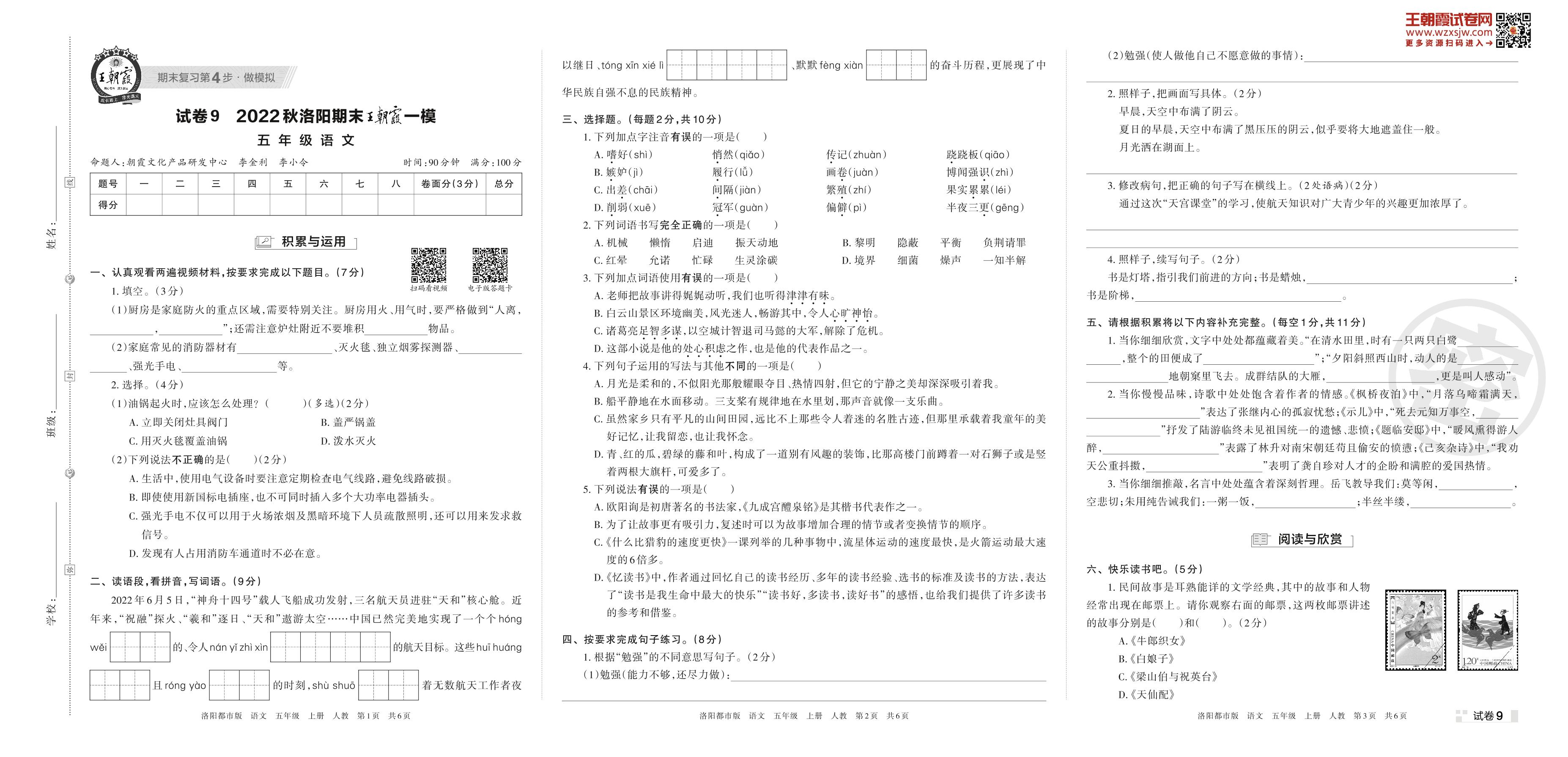 王朝霞期末模拟卷五年级上册语文(人教版)_R221112170919197【9】