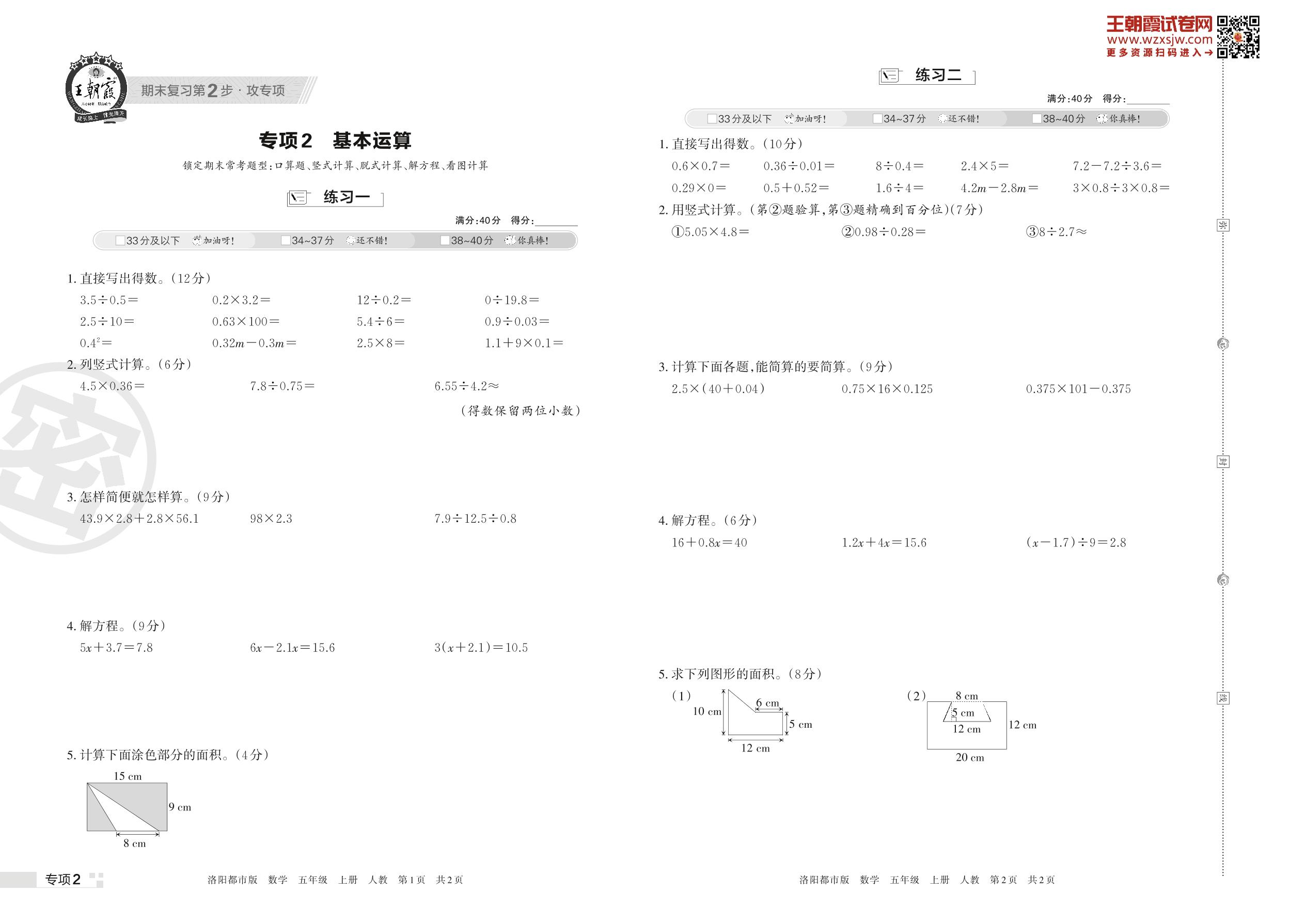 王朝霞期末专项卷——基本运算五年级上册数学(人教版)_R221112173139850【2】