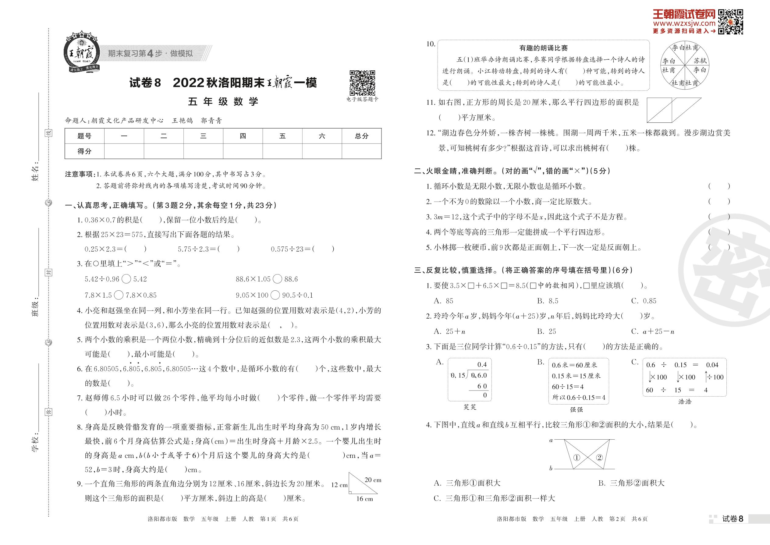 王朝霞期末模拟卷五年级上册数学(人教版)_R221112173141299【8】
