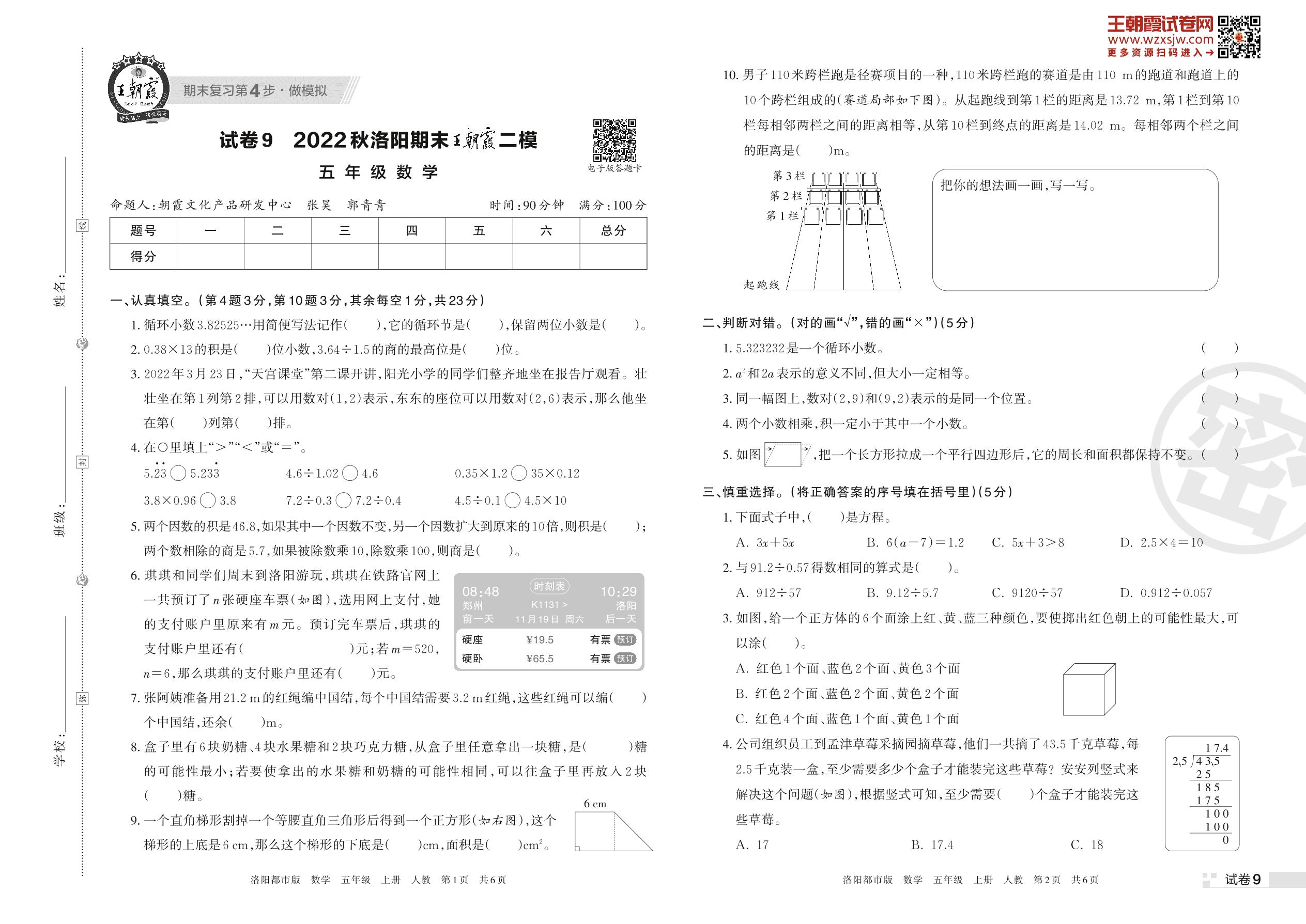 王朝霞期末模拟卷五年级上册数学(人教版)_R221112173141683【9】