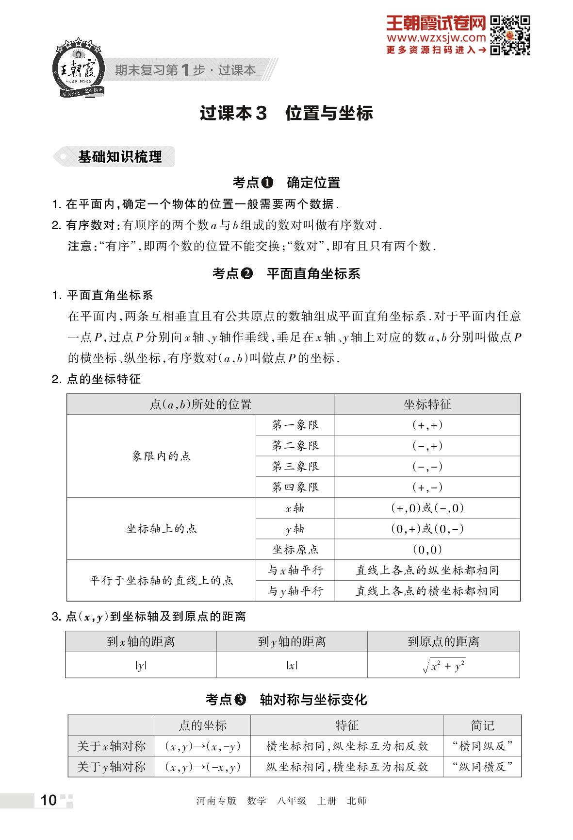 王朝霞期末过课本——3 位置与坐标八年级上册数学(北师版)