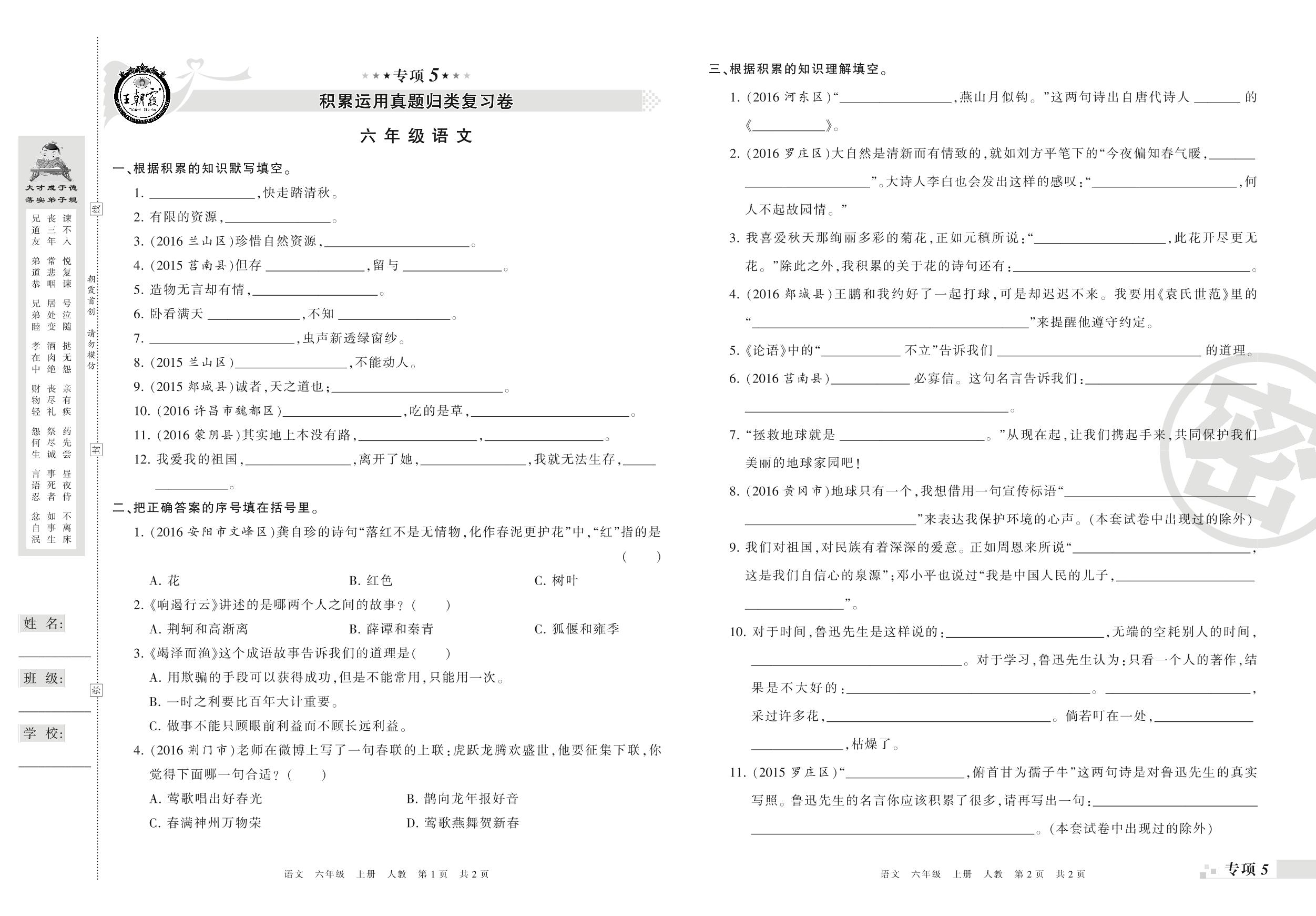王朝霞期末专项卷——积累运用、课内阅读(一)真题归类复习卷六年级上册语文(人教版)_R210802113820【0】