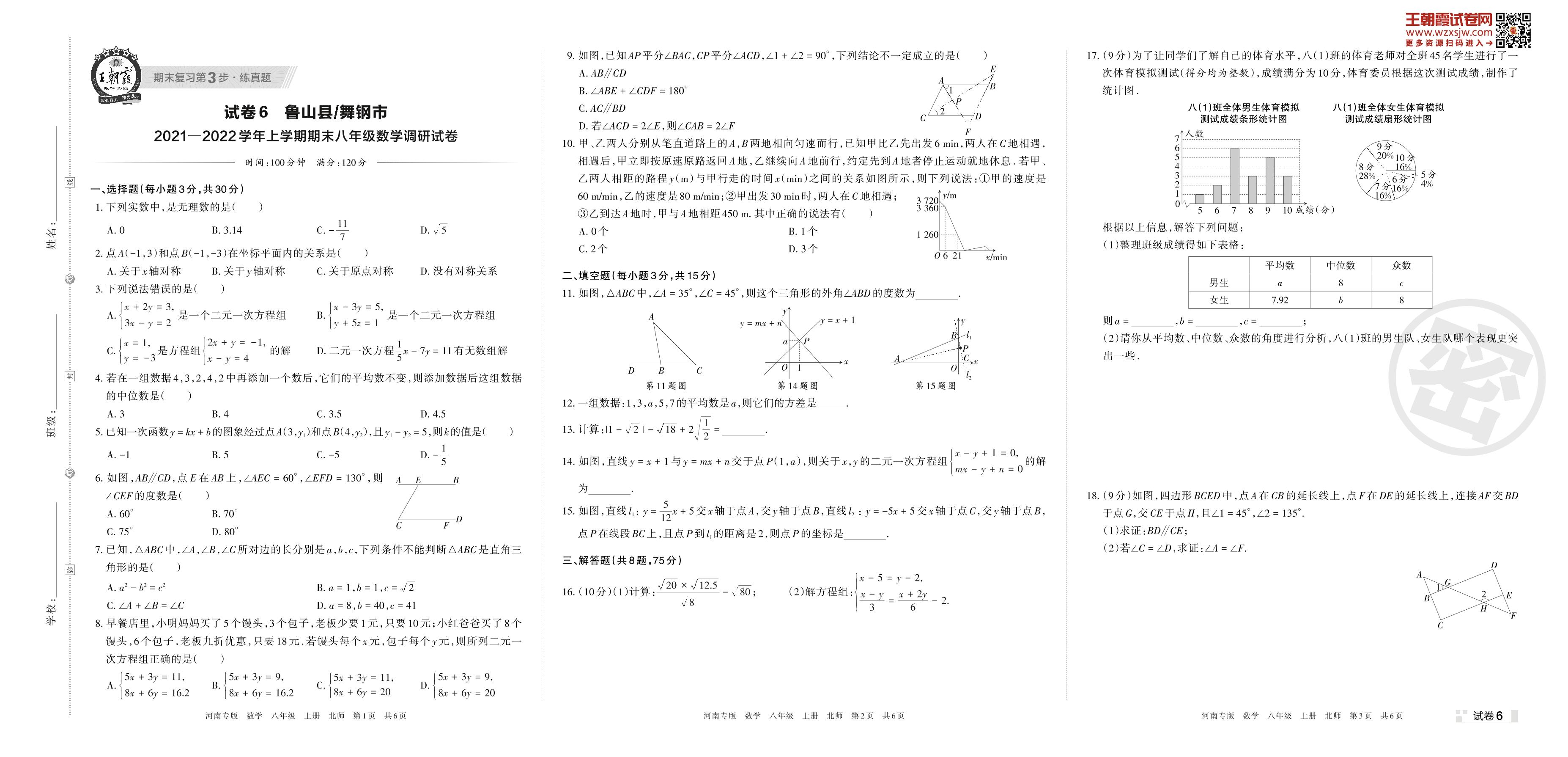 鲁山县、舞钢市2021—2022学年上学期期末八年级数学调研试卷(北师版)【6】