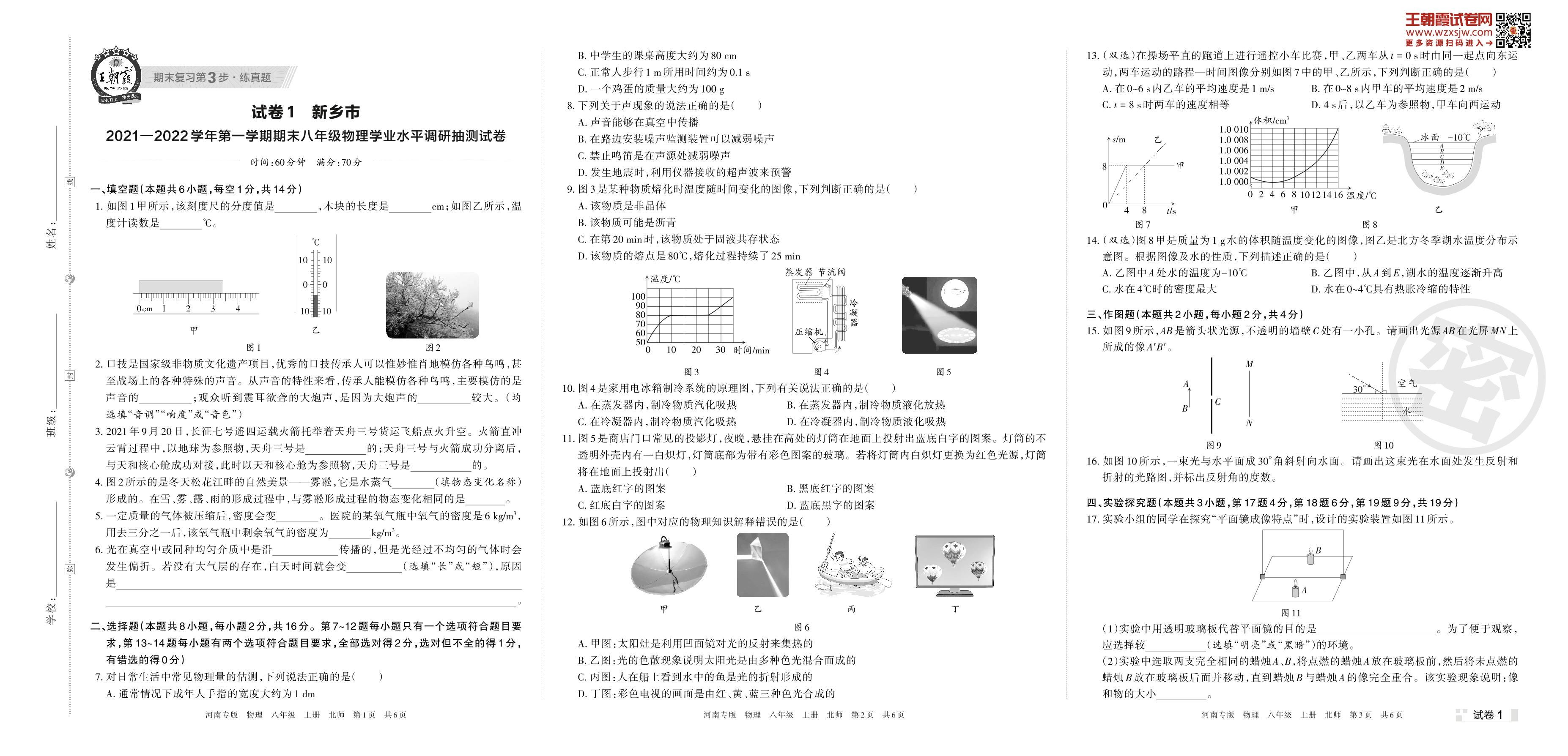 新乡市2021—2022学年第一学期期末八年级物理学业水平调研抽测试卷(北师版)【1】