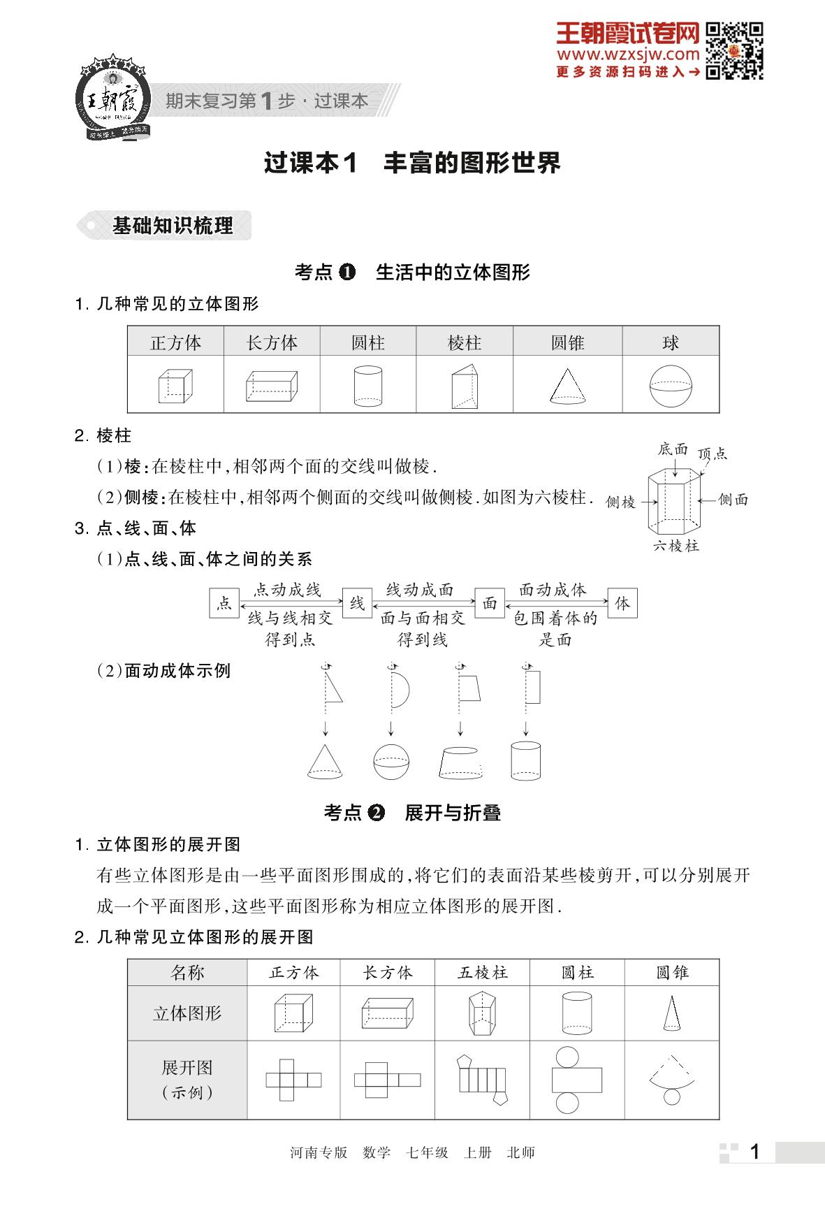王朝霞期末过课本——1 丰富的图形世界七年级上册数学(北师版)