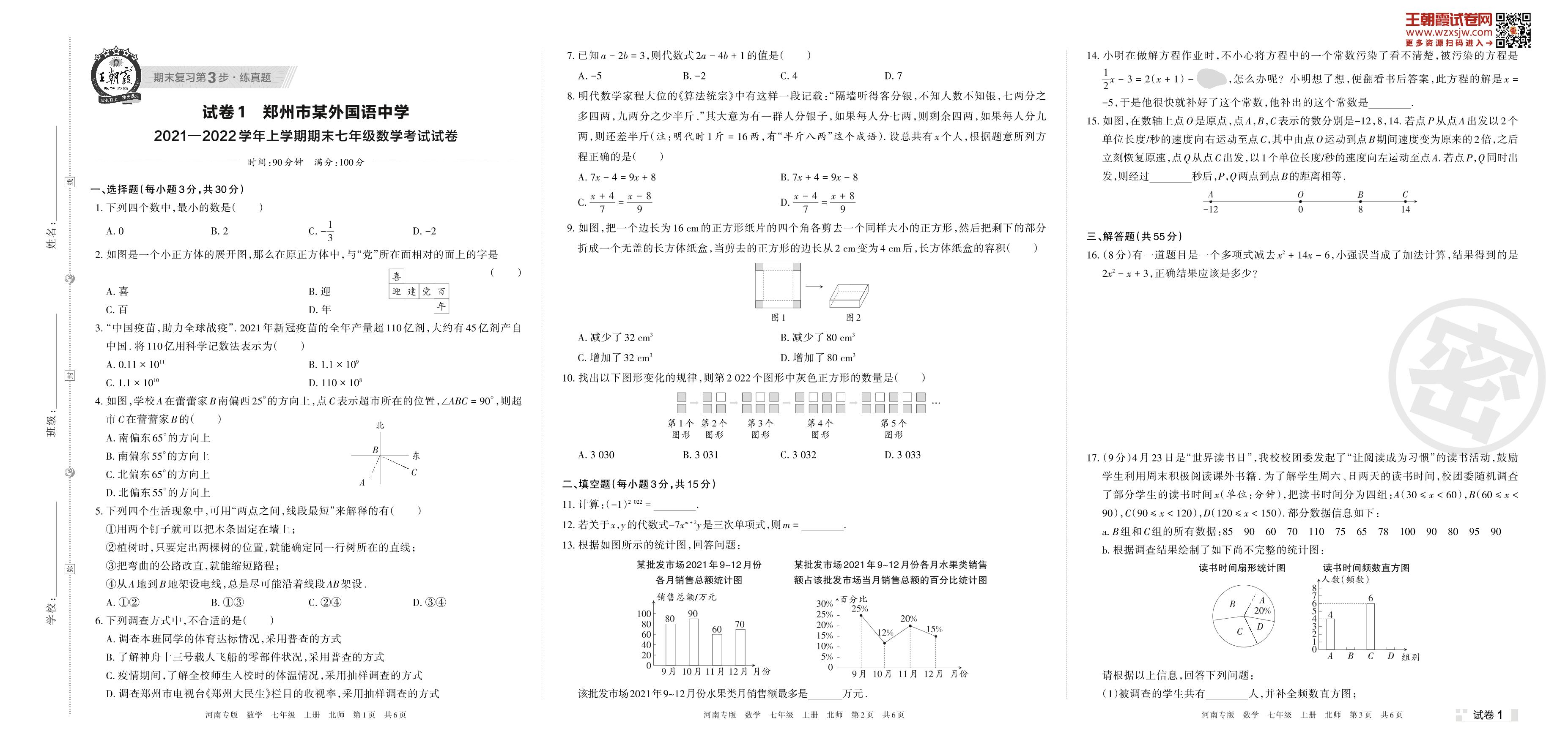 郑州市某外国语中学2021—2022学年上学期期末七年级数学考试试卷(北师版)【1】