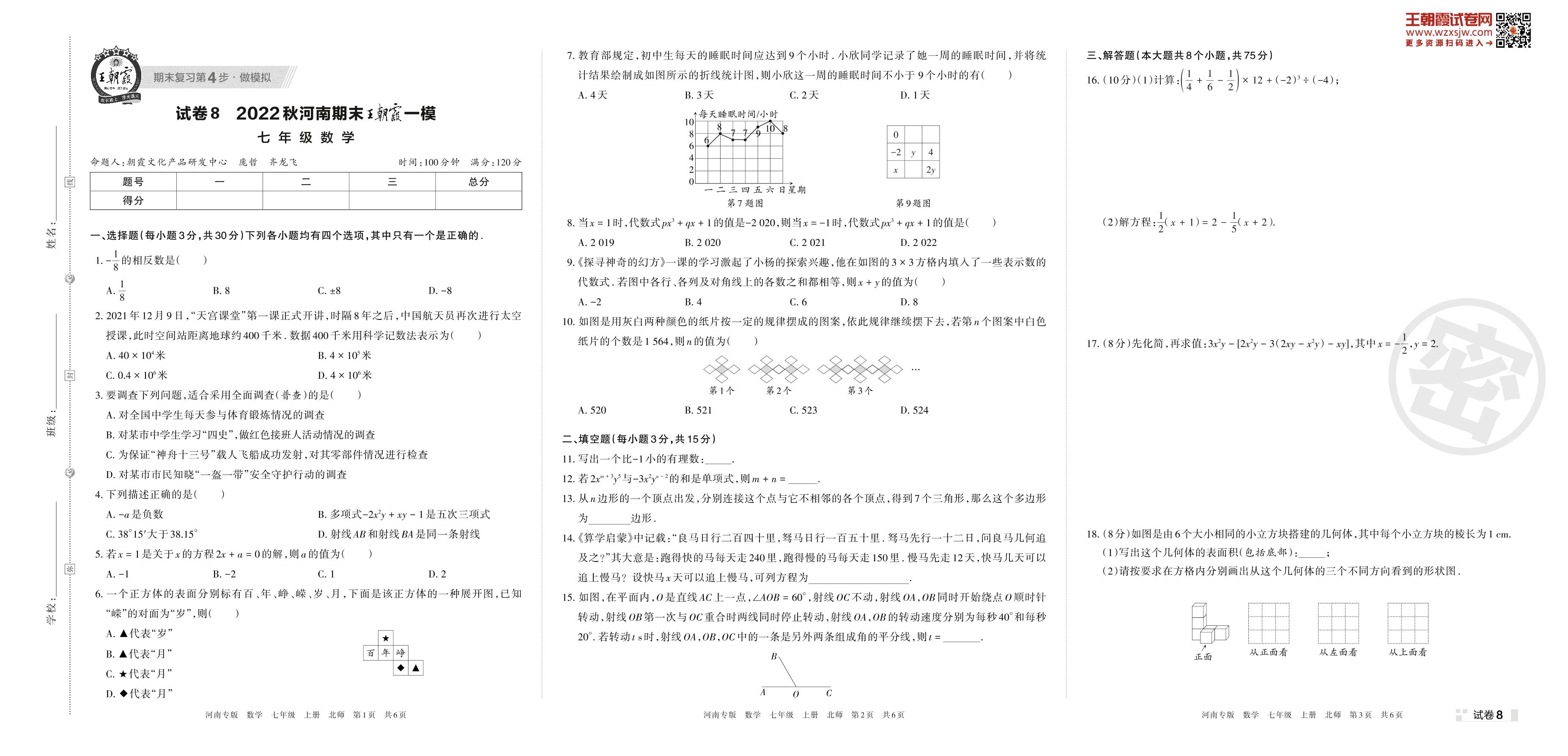 王朝霞期末模拟卷七年级上册数学(北师版)【8】