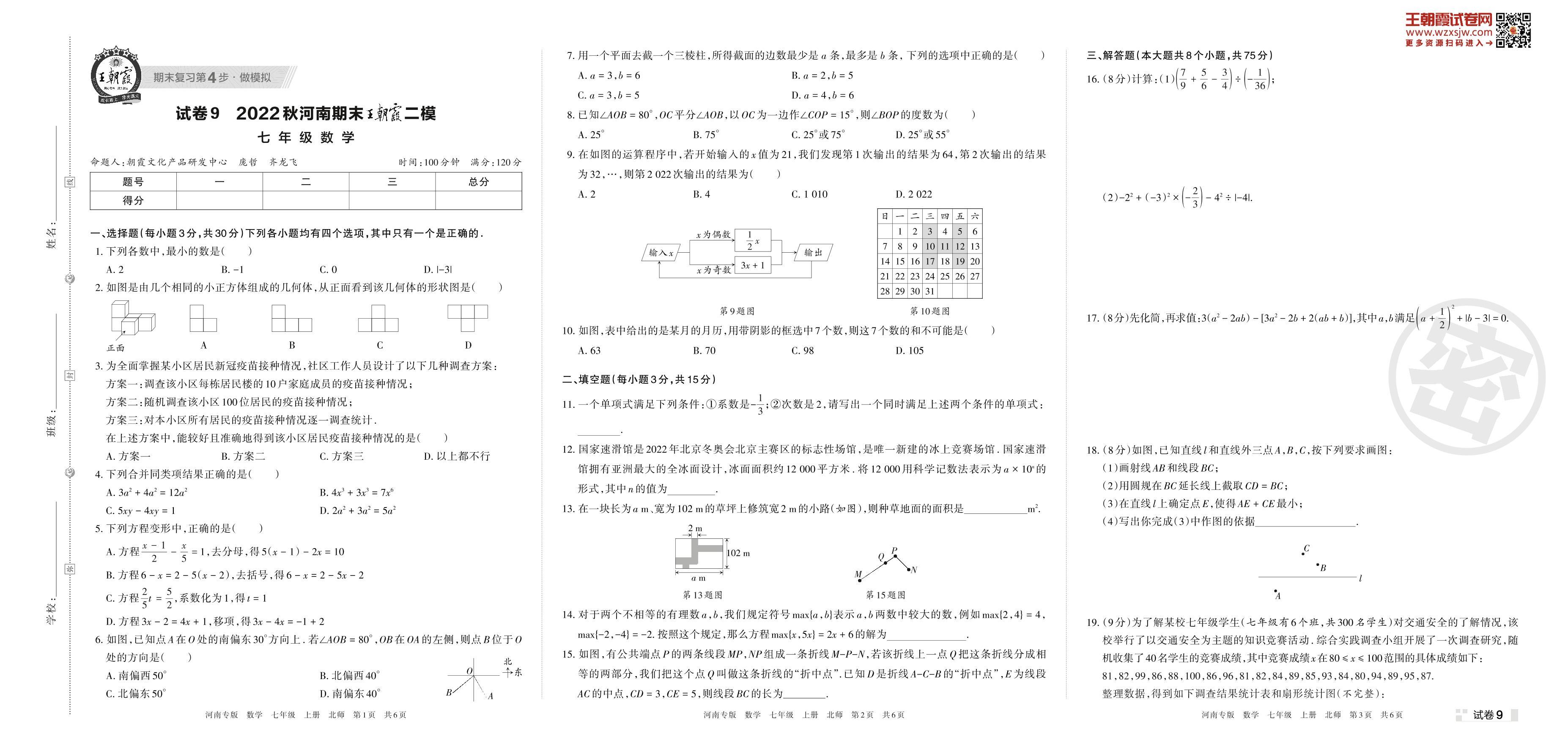 王朝霞期末模拟卷七年级上册数学(北师版)_R221114160338926【9】